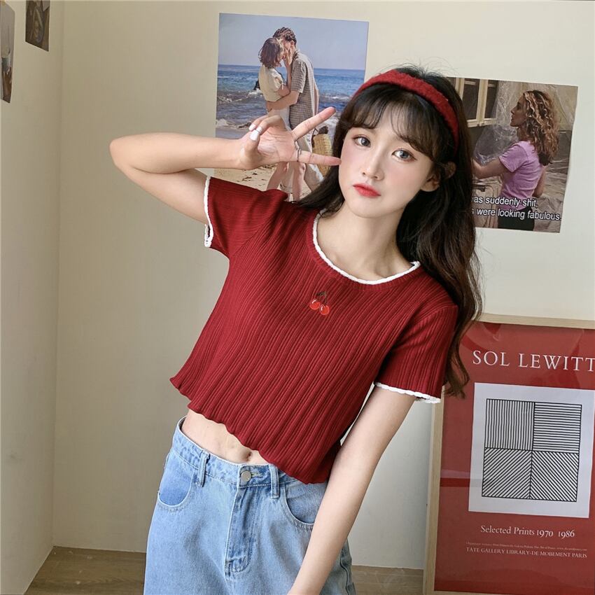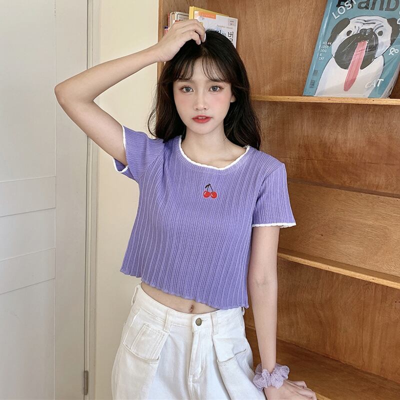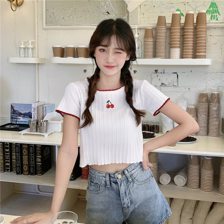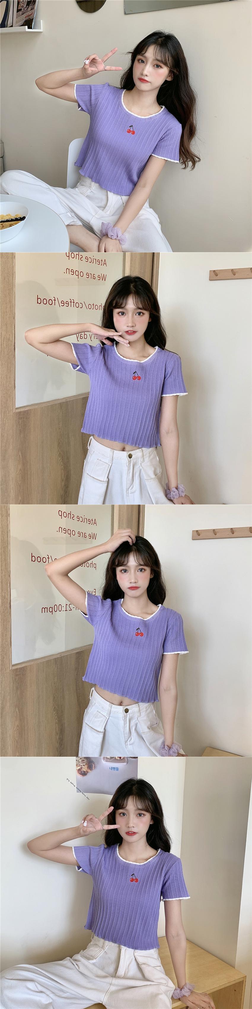 ✞ 刺繍ショート♥カワイイ♥ニットトップス スリムTシャツ ✞ゴスロリ SM ミリ 甘ロリ クラロリ 和ロリ エレガント 黒ロリ 姫ロリ 華ロリ BB-BB4162835