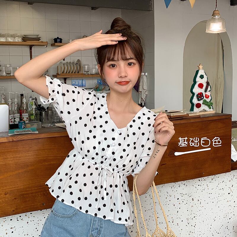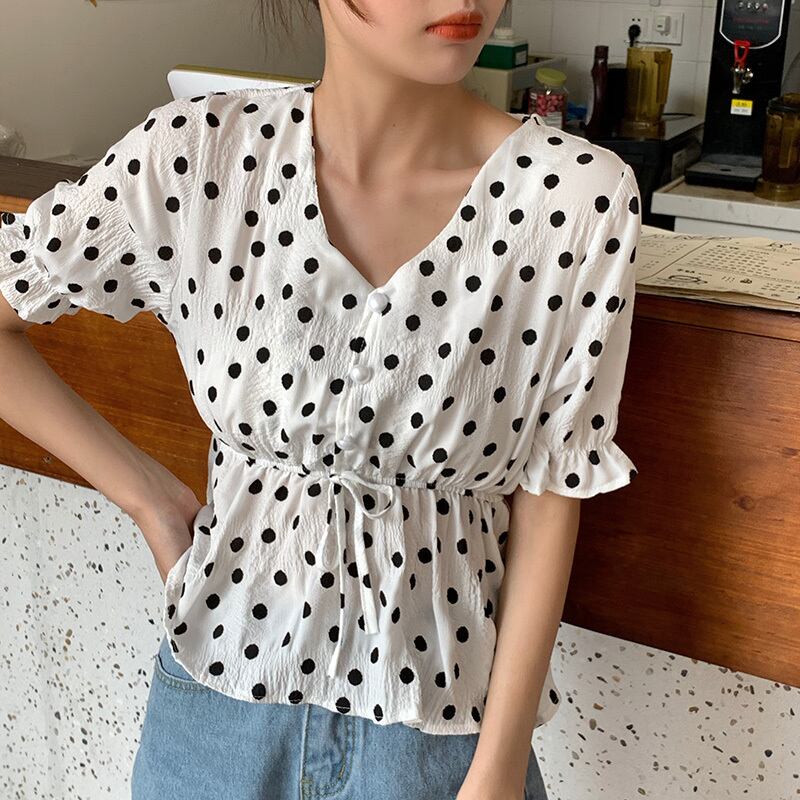 ✞ 水玉シフォントップス ストラップ ウエストすっきり☆着痩せVネックスリーブシャツブラウス大人女子☆ スウィート ガーリー ✞ゴスロリ SM ミリ 甘ロリ クラロリ 和ロリ エレガント 黒ロリ 姫ロリ 華ロリ BB-BB6348614