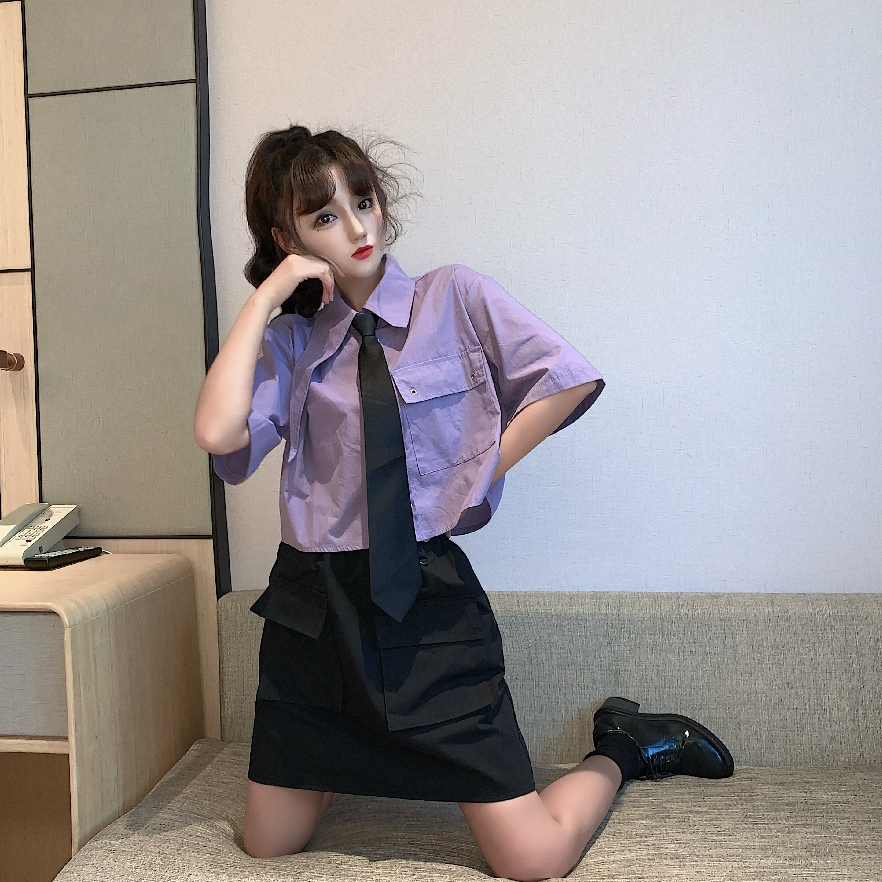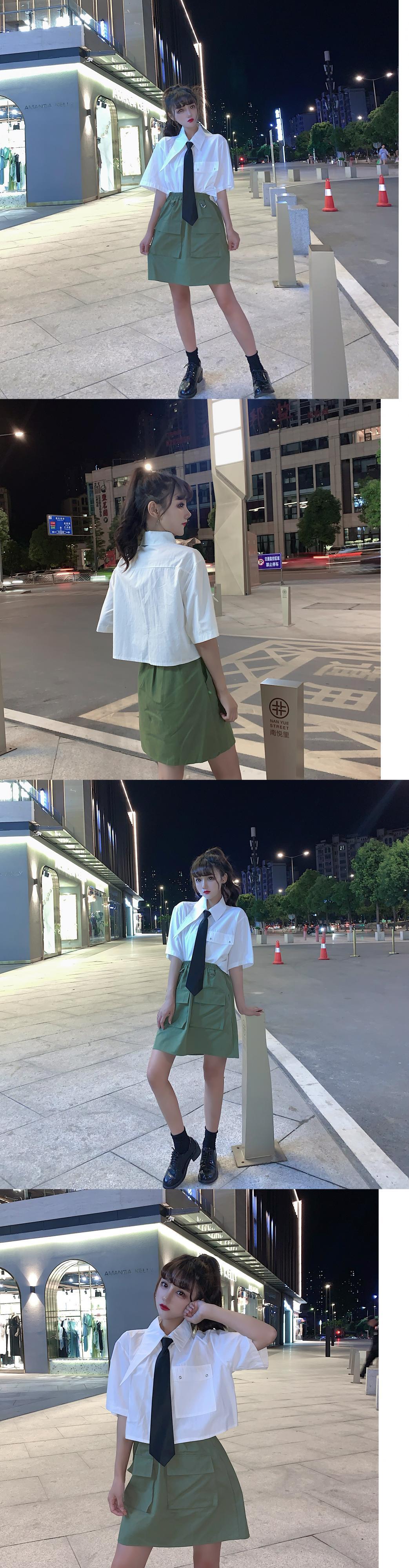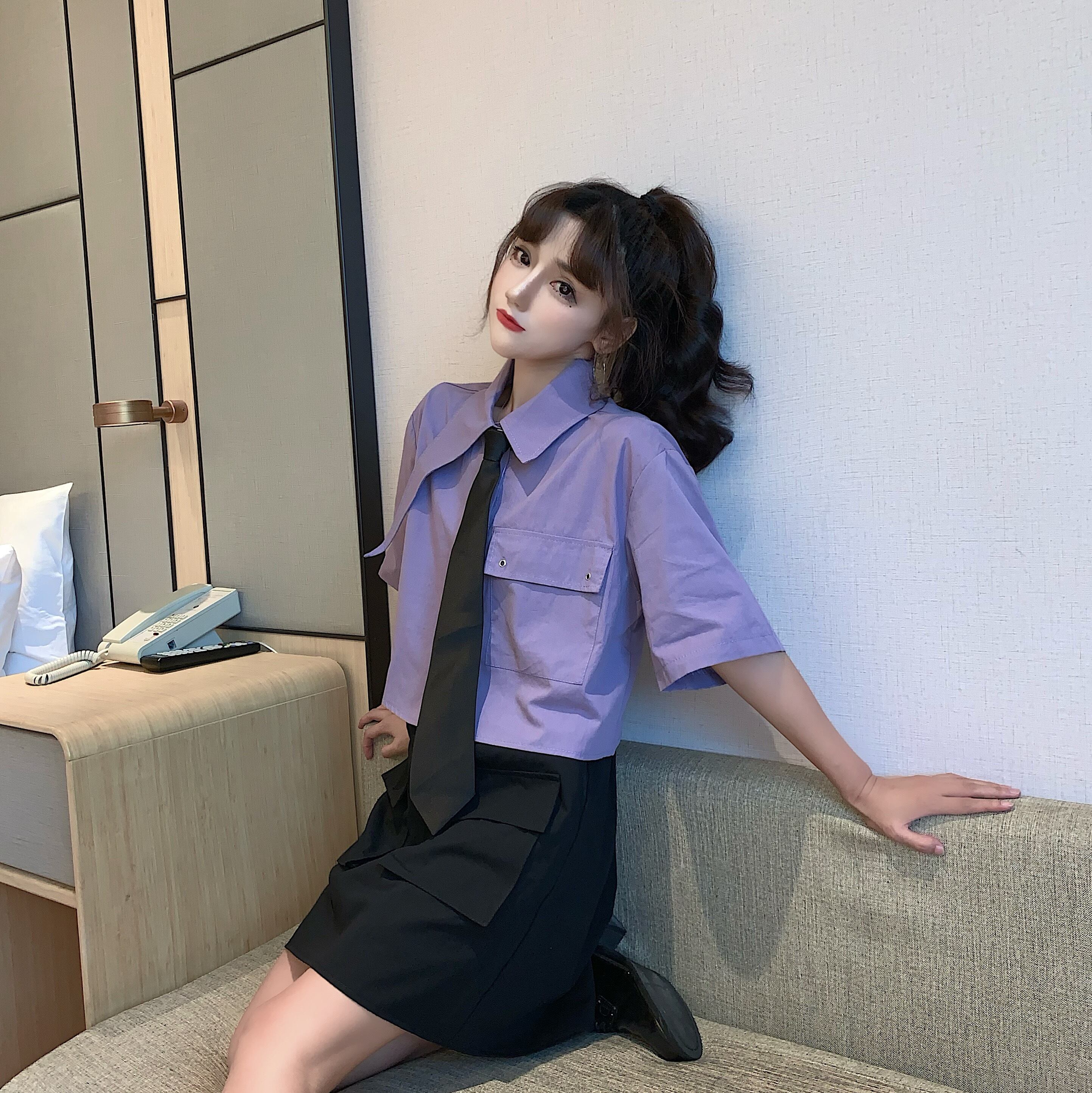 色:白シャツネクタイベルト,パープルシャツネクタイベルト,緑のショートスカートワンピース,黒のショートスカートワンピース