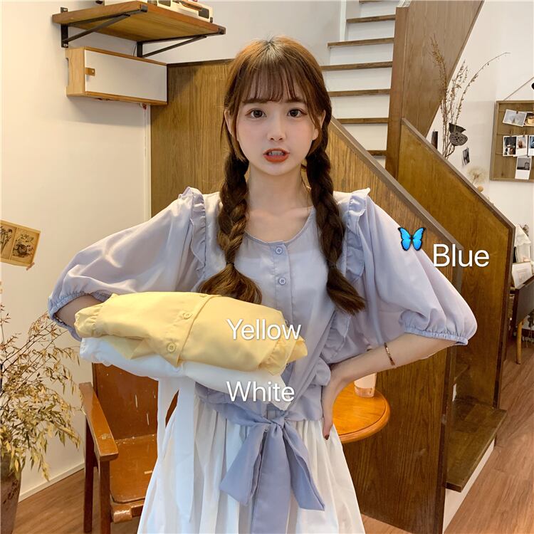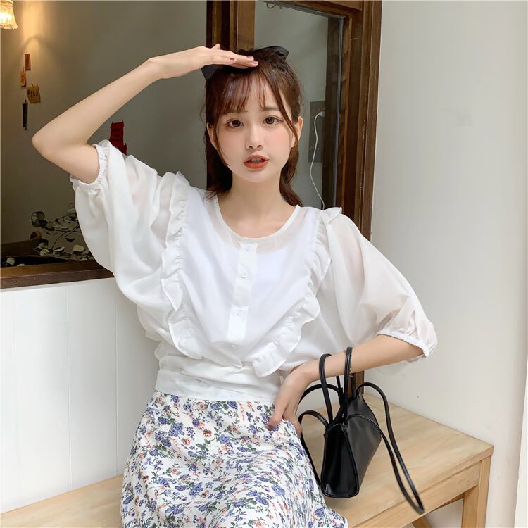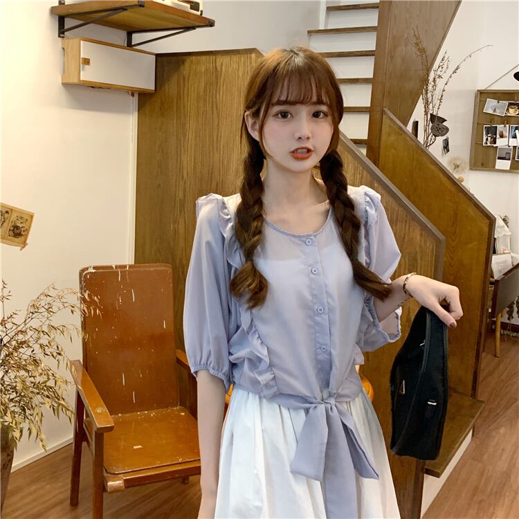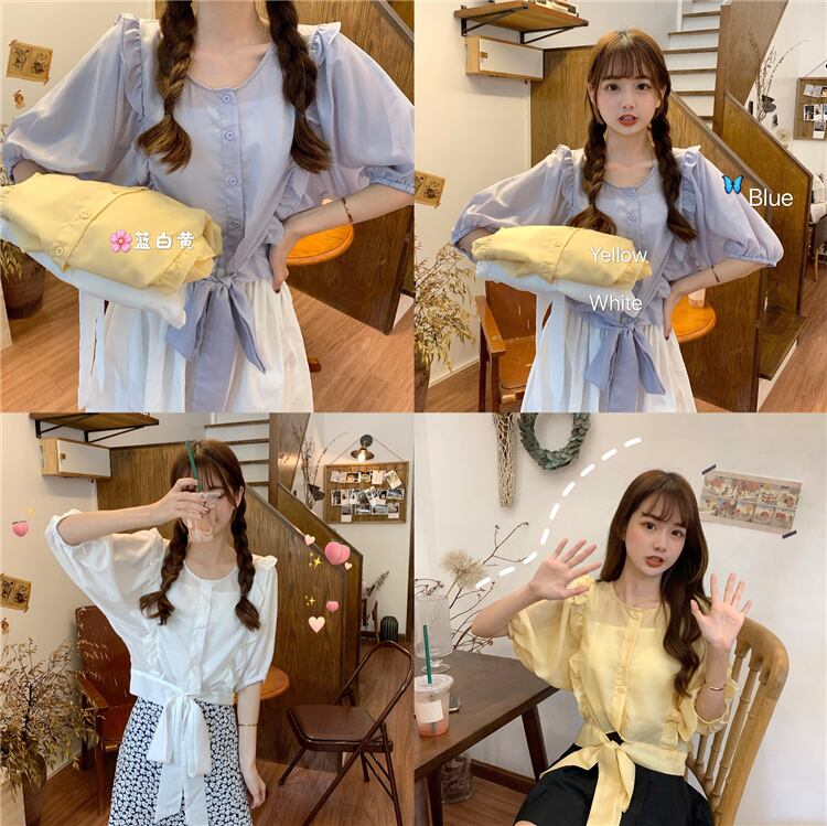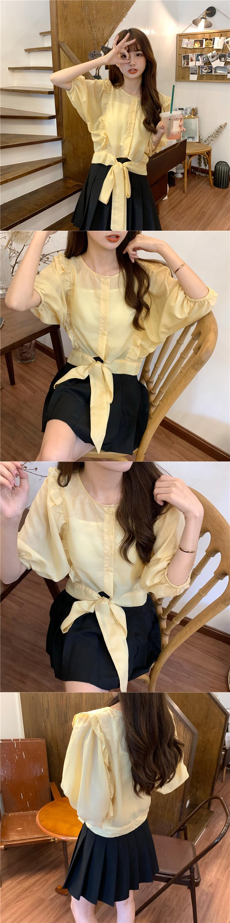 ✞ シャツブラウスきれいめ☆ラウンドネックスリーブラッフルレースショートトップス レースアップ ステッチ ✞ゴスロリ SM ミリ 甘ロリ クラロリ 和ロリ エレガント 黒ロリ 姫ロリ 華ロリ BB-BB1858625