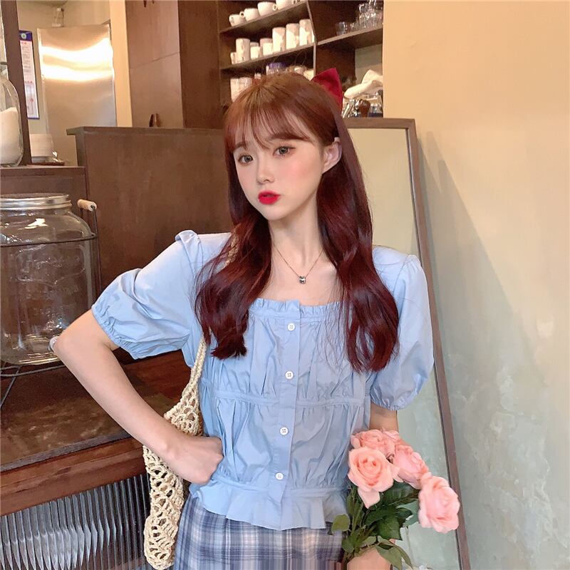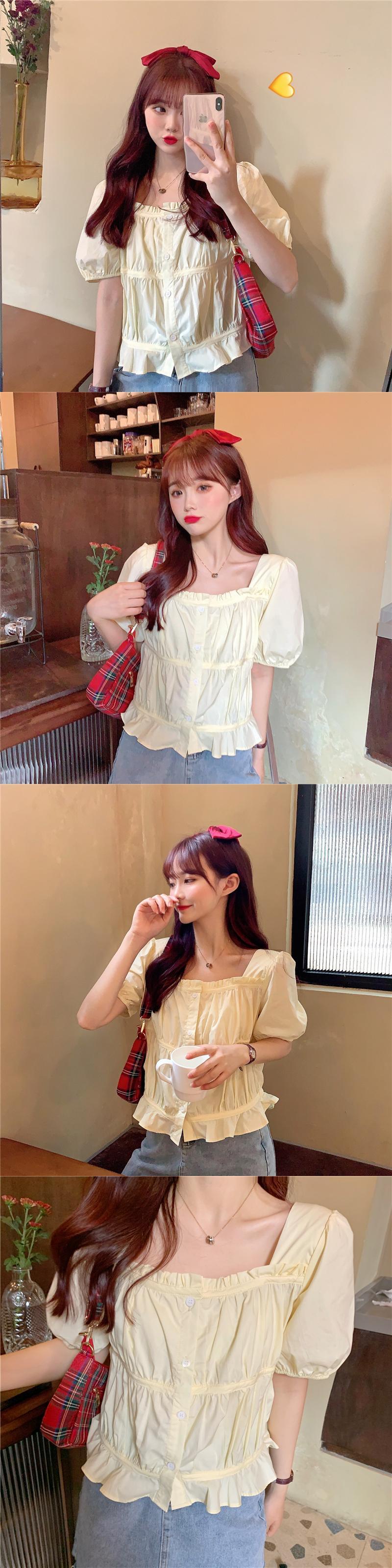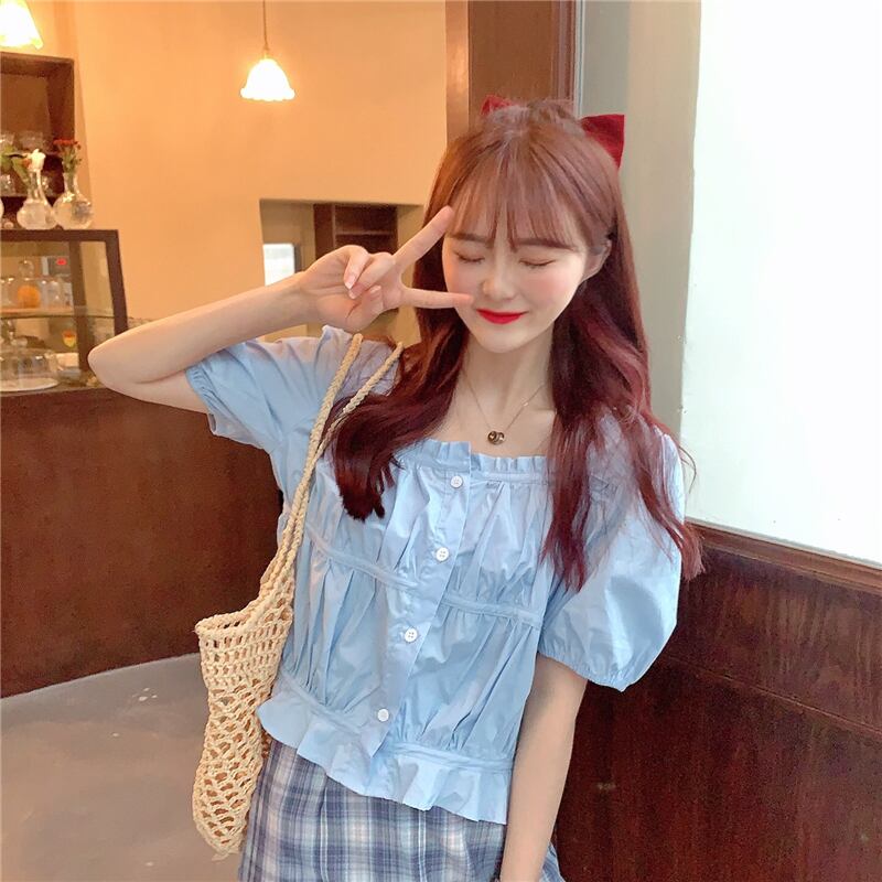 ✞ きれいめ☆プリーツソリッド カラースリーブショートシャツブラウス レース ソリッドカラー スクウェア ✞ゴスロリ SM ミリ 甘ロリ クラロリ 和ロリ エレガント 黒ロリ 姫ロリ 華ロリ BB-BB6186904
