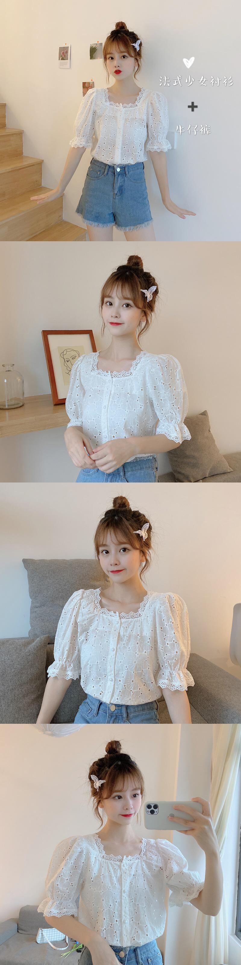 ✞ ショートシャツブラウス♥カワイイ♥レース大人女子☆ 刺繍 スウィート スクウェア ✞ゴスロリ SM ミリ 甘ロリ クラロリ 和ロリ エレガント 黒ロリ 姫ロリ 華ロリ BB-BB5844055