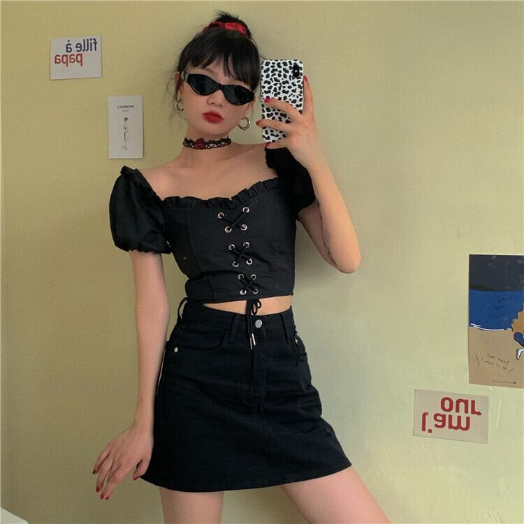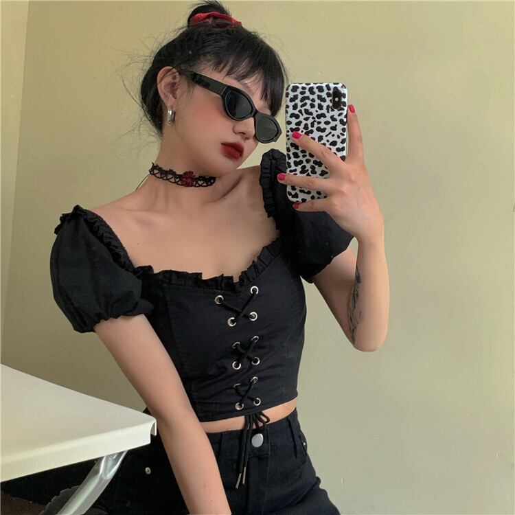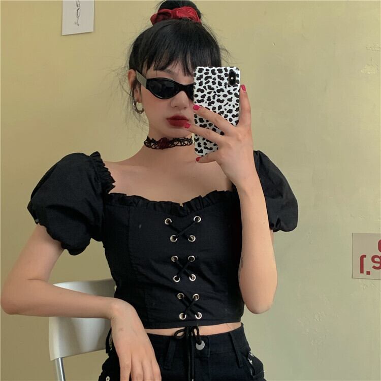 ✞ トップスダークきれいめ☆ショートスリーブシャツブラウス ✞ゴスロリ SM ミリ 甘ロリ クラロリ 和ロリ エレガント 黒ロリ 姫ロリ 華ロリ BB-BB4308851