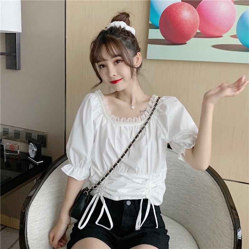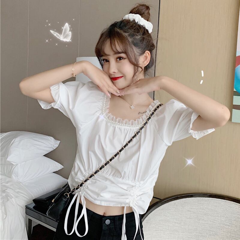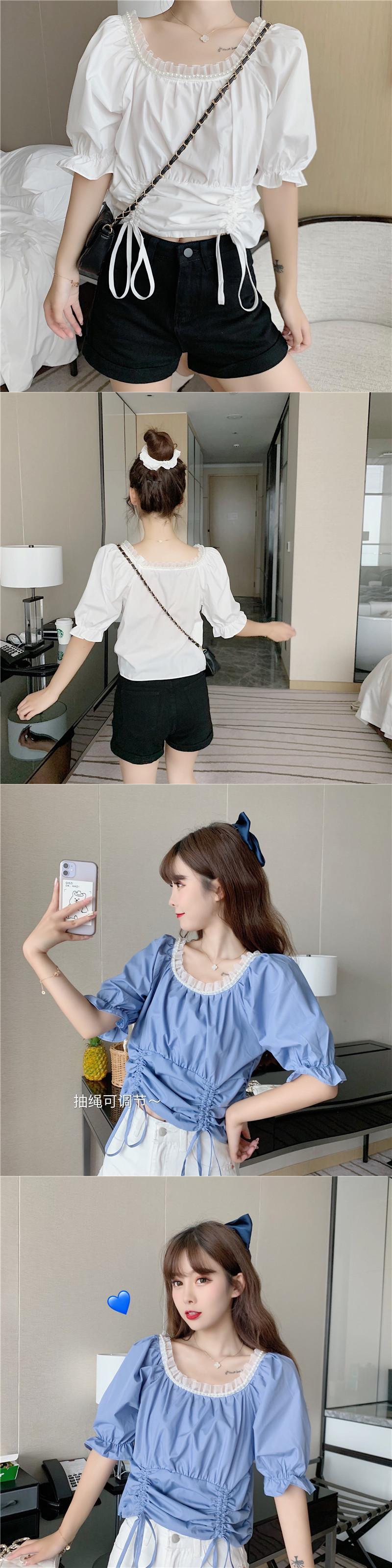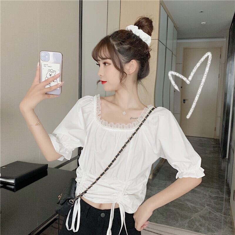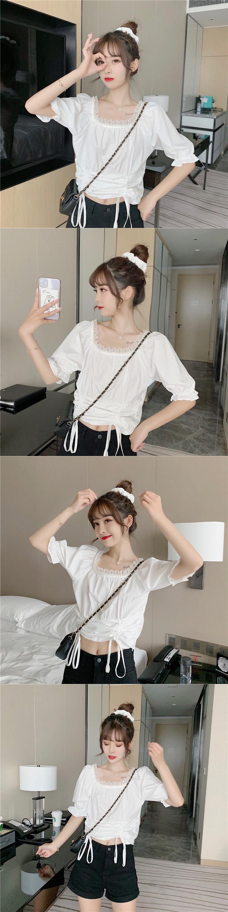 ✞ スタンダードスリムギャザーレースショートシャツブラウス レトロ スクウェア ✞ゴスロリ SM ミリ 甘ロリ クラロリ 和ロリ エレガント 黒ロリ 姫ロリ 華ロリ BB-BB8083142