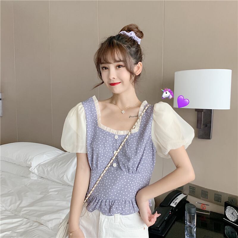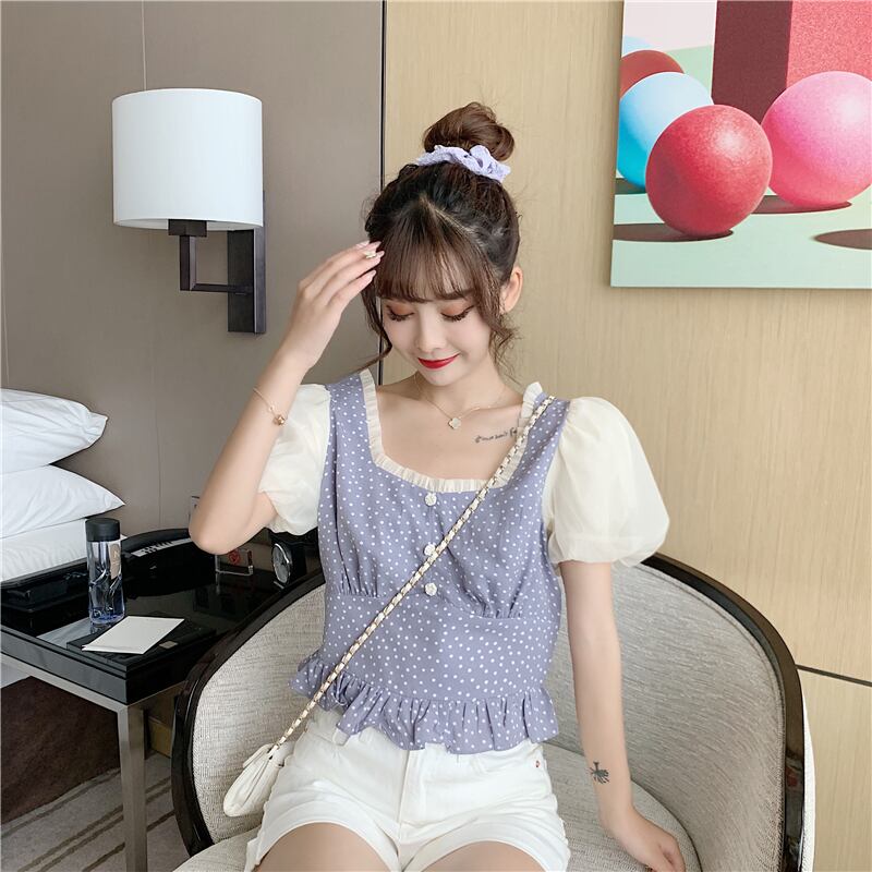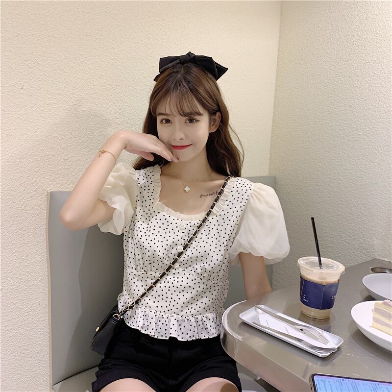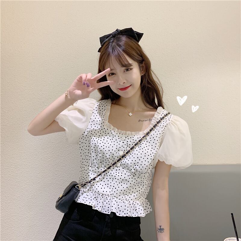 ✞ シャツブラウススタンダード水玉スリーブショート大人女子☆ レトロ スクウェア ✞ゴスロリ SM ミリ 甘ロリ クラロリ 和ロリ エレガント 黒ロリ 姫ロリ 華ロリ BB-BB7858635
