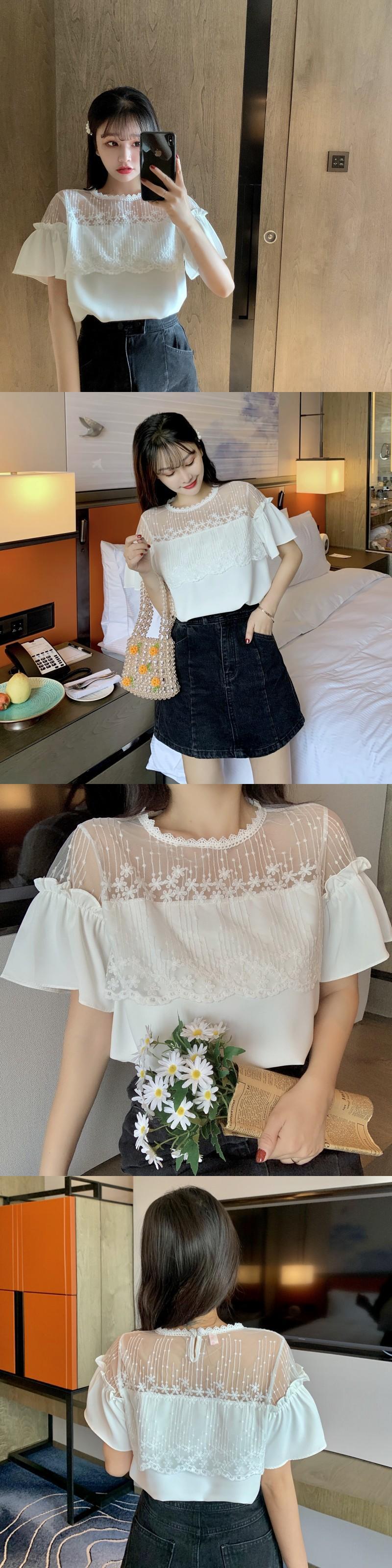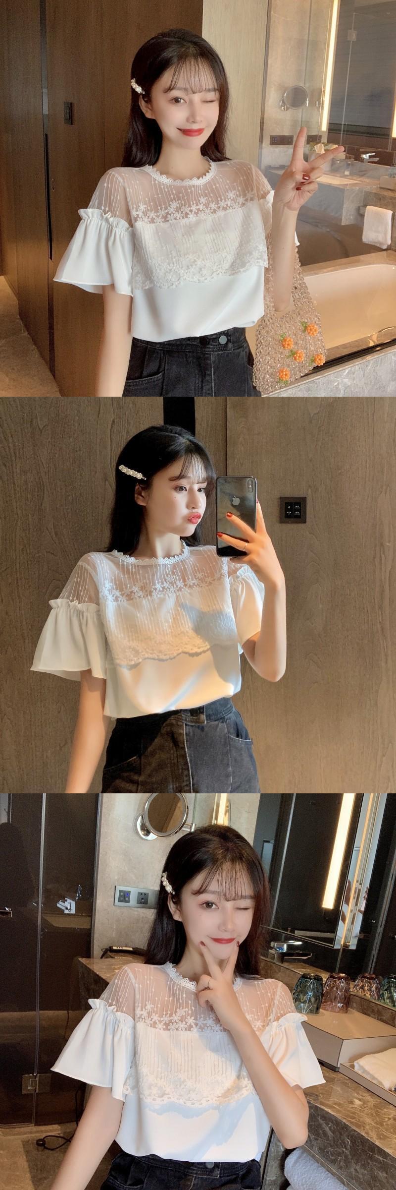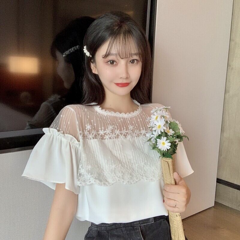 ✞ スタンダードレースストラップレスシフォントップス スリーブラウンドネックTシャツ レトロ スウィート ✞ゴスロリ SM ミリ 甘ロリ クラロリ 和ロリ エレガント 黒ロリ 姫ロリ 華ロリ BB-BB8808774