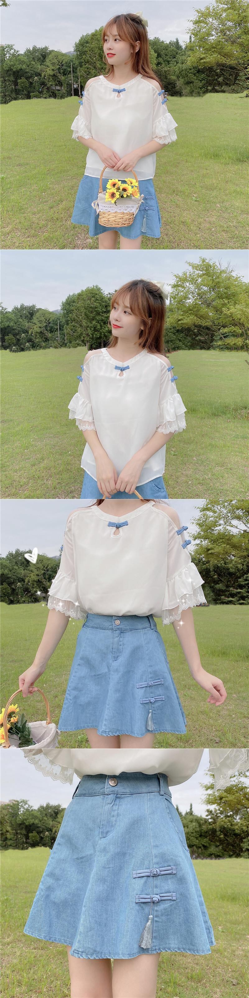 ✞ セット シフォンシャツブラウストップス Aラインスカート スウィート ✞ゴスロリ SM ミリ 甘ロリ クラロリ 和ロリ エレガント 黒ロリ 姫ロリ 華ロリ BB-BB1035231