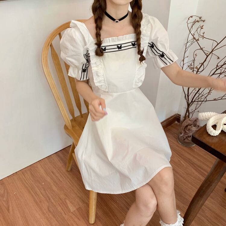 ✞ Butterflyデザイン 刺繍スリーブウエストすっきり☆着痩せスカート ロング スウィート スクウェア ✞ゴスロリ SM ミリ 甘ロリ クラロリ 和ロリ エレガント 黒ロリ 姫ロリ 華ロリ BB-BB0483615