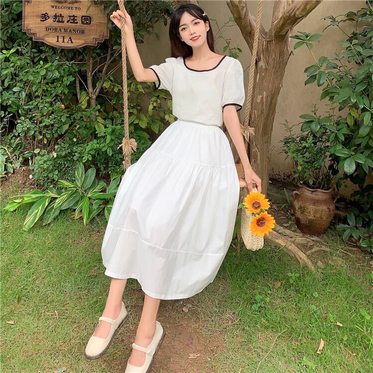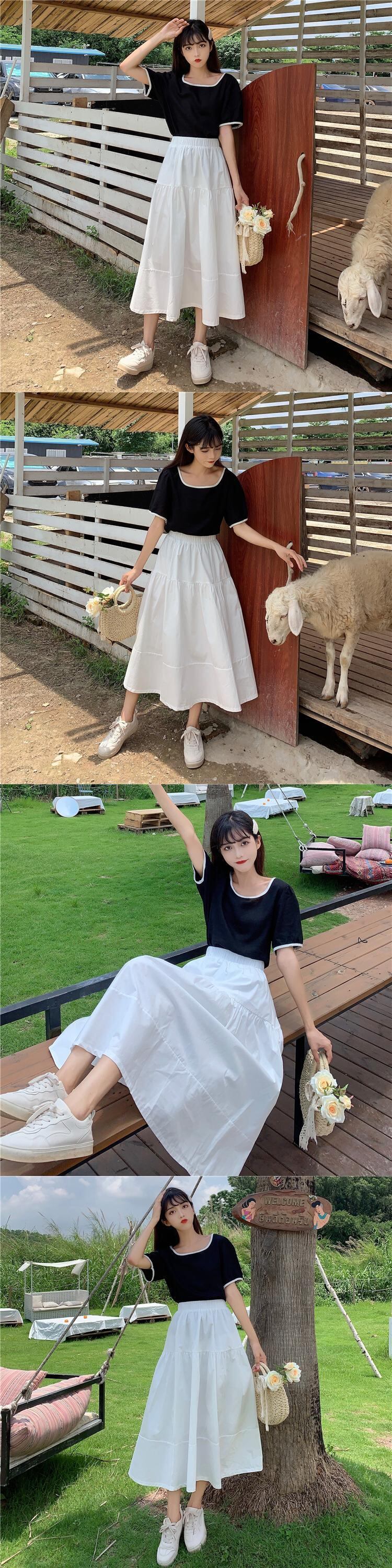 色:ホワイトトップ,黒シャツワンピース,白のミドル丈スカートワンピース,黒のミドル丈スカートワンピース