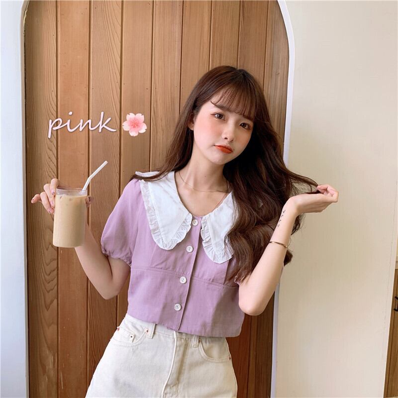✞ シャツブラウスショートスリーブソリッド カラー スウィート ガーリー ソリッドカラー ✞ゴスロリ SM ミリ 甘ロリ クラロリ 和ロリ エレガント 黒ロリ 姫ロリ 華ロリ BB-BB0422615