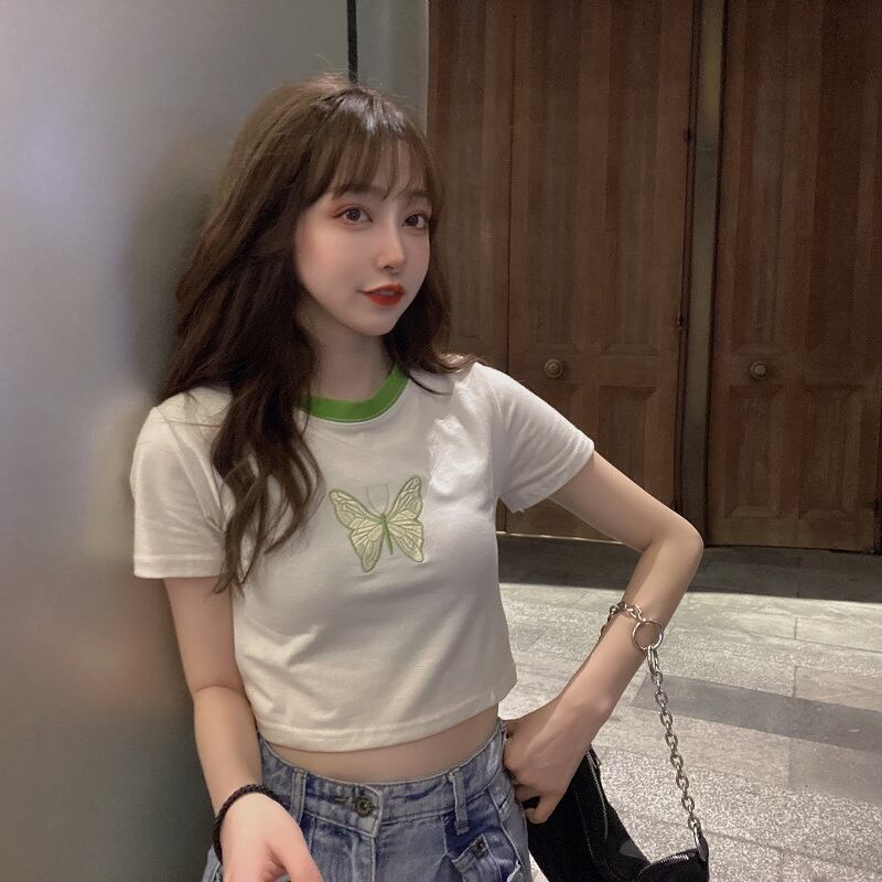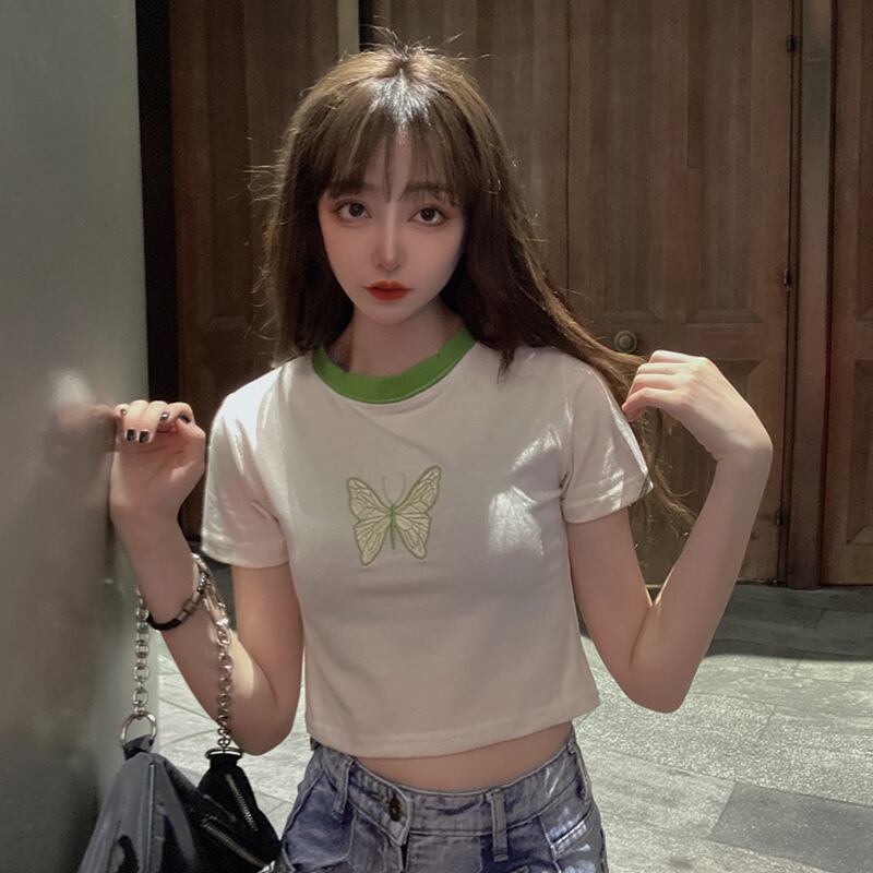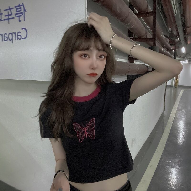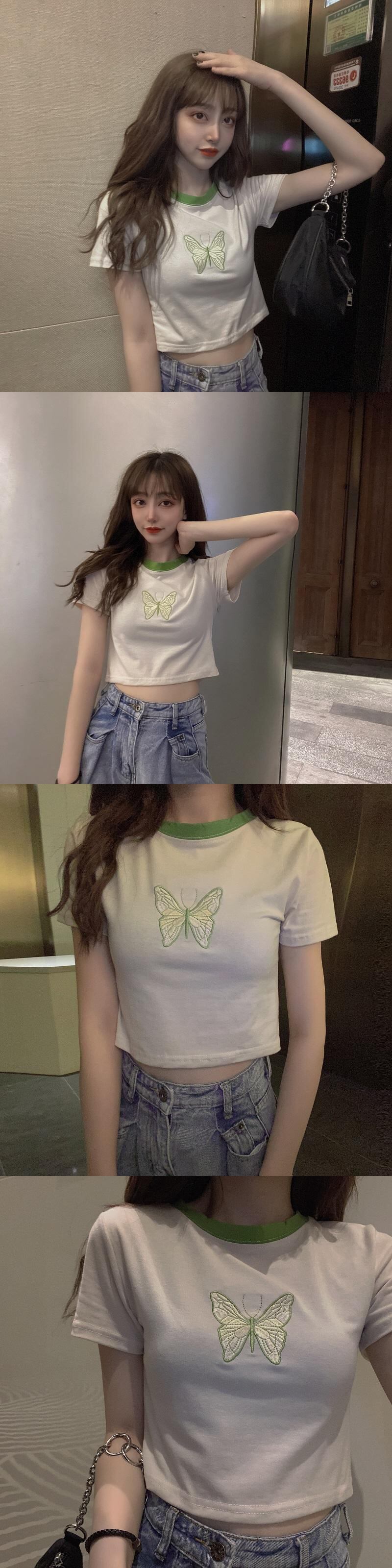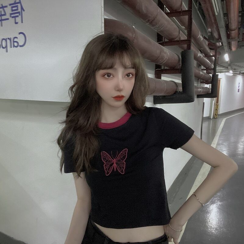 ✞ 刺繍Butterflyデザイン カラーショートシャツブラウスTシャツ ✞ゴスロリ SM ミリ 甘ロリ クラロリ 和ロリ エレガント 黒ロリ 姫ロリ 華ロリ BB-BB3247273