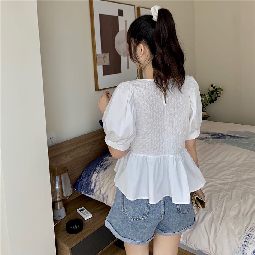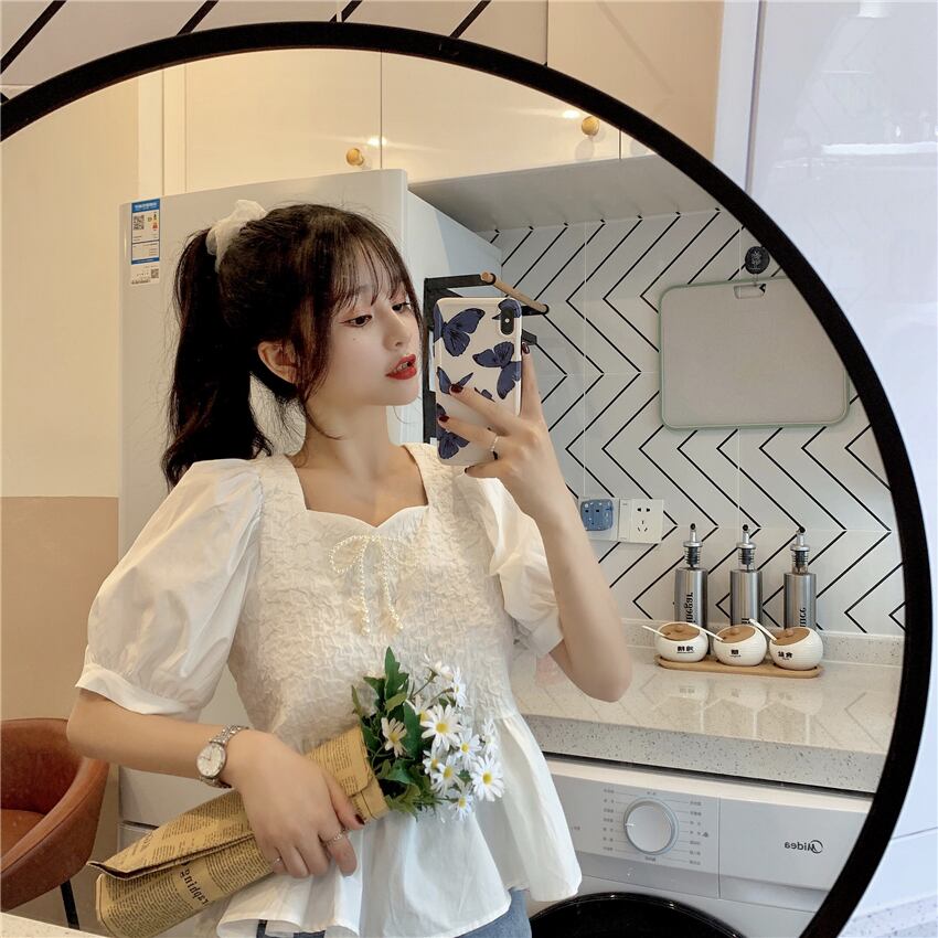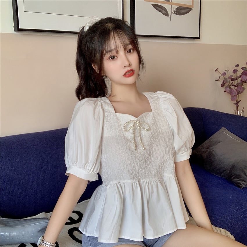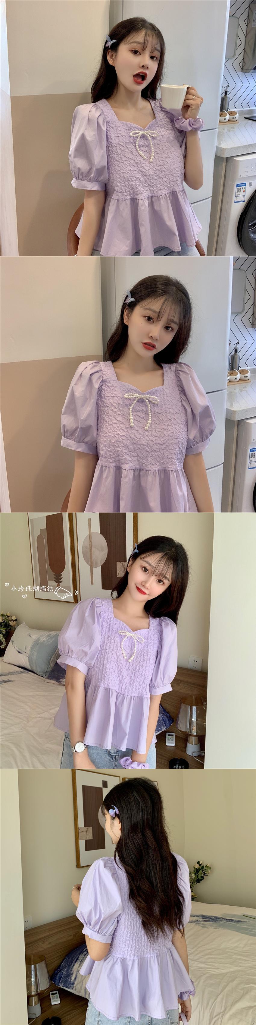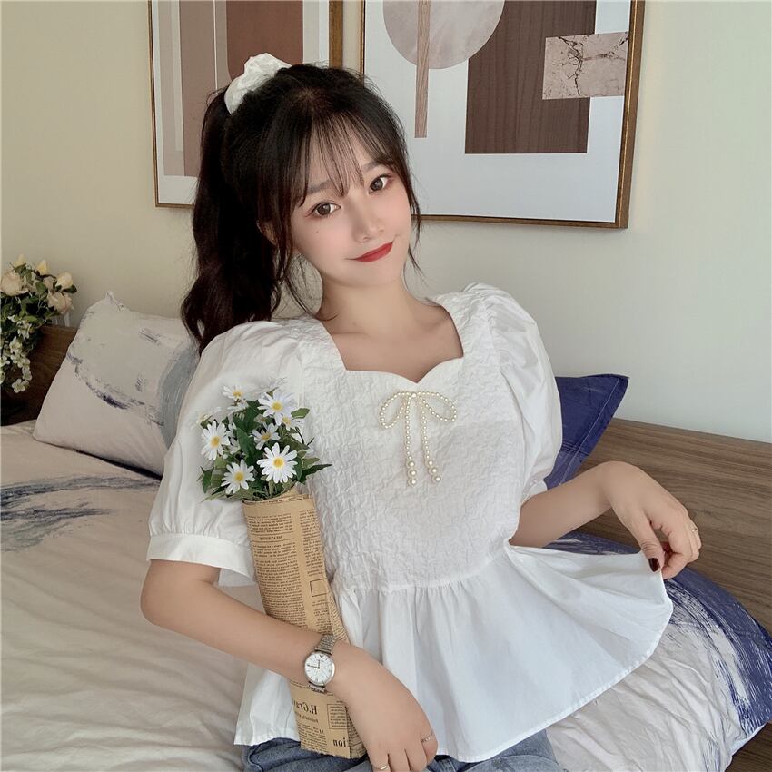 ✞ パールシャツブラウスショートトップス リボン スウィート 真珠 スクウェア ステッチ ✞ゴスロリ SM ミリ 甘ロリ クラロリ 和ロリ エレガント 黒ロリ 姫ロリ 華ロリ BB-BB2996917