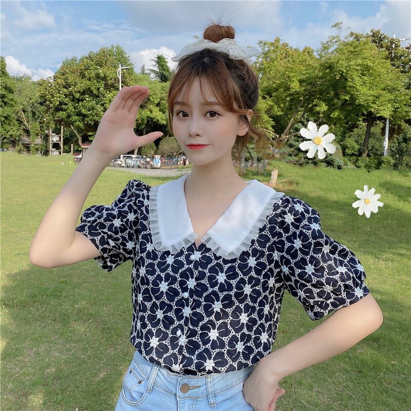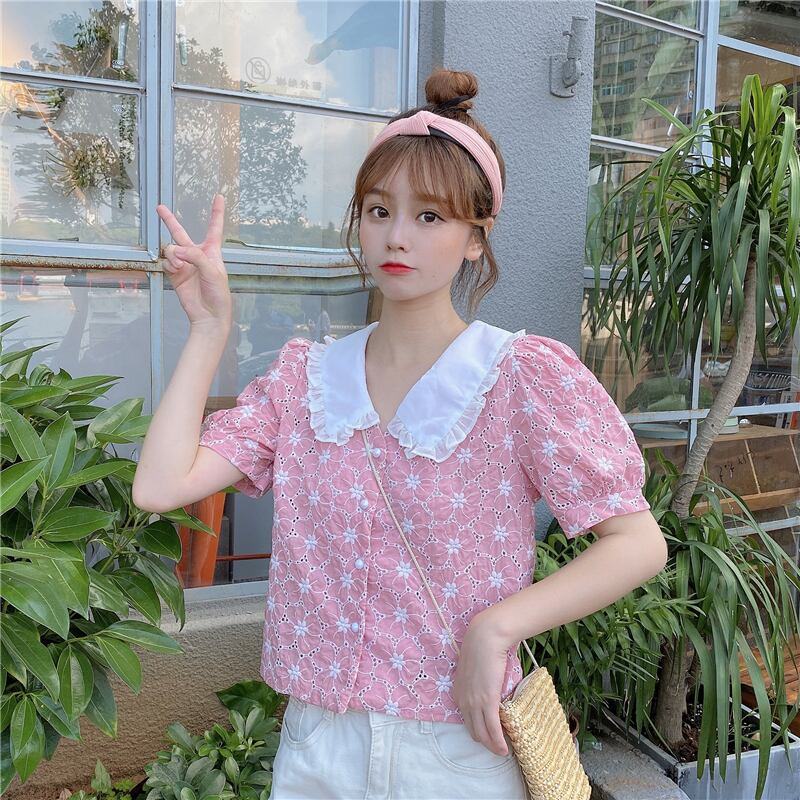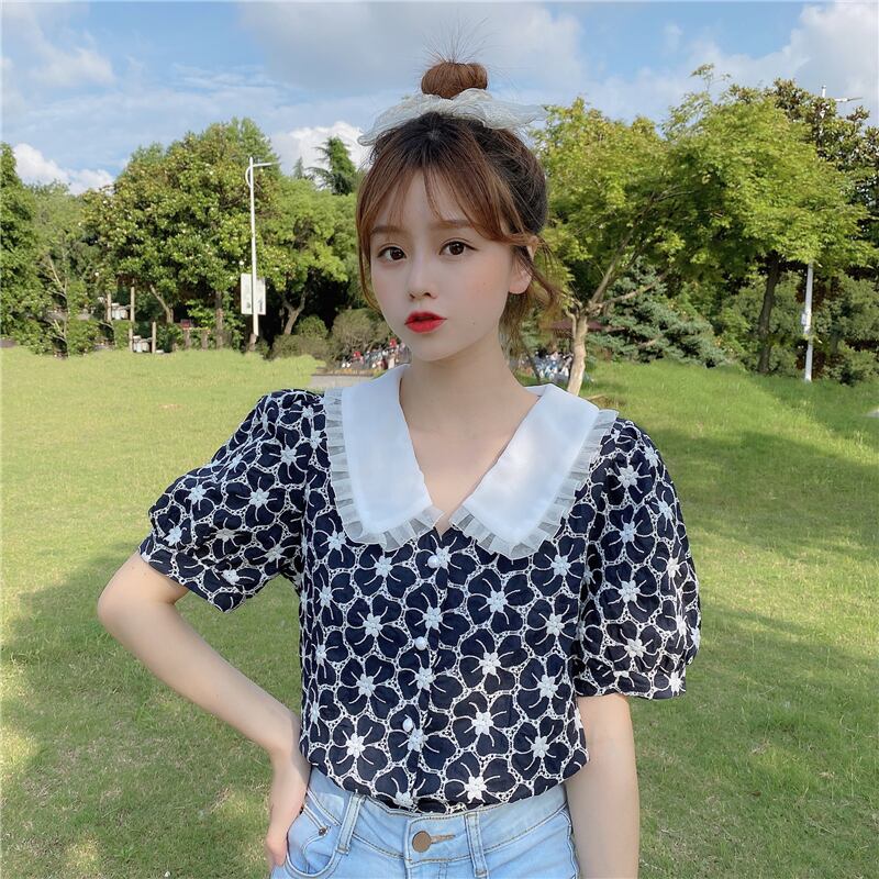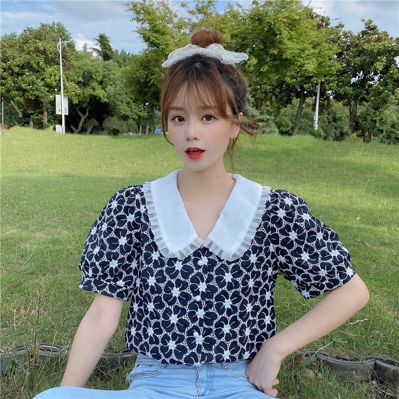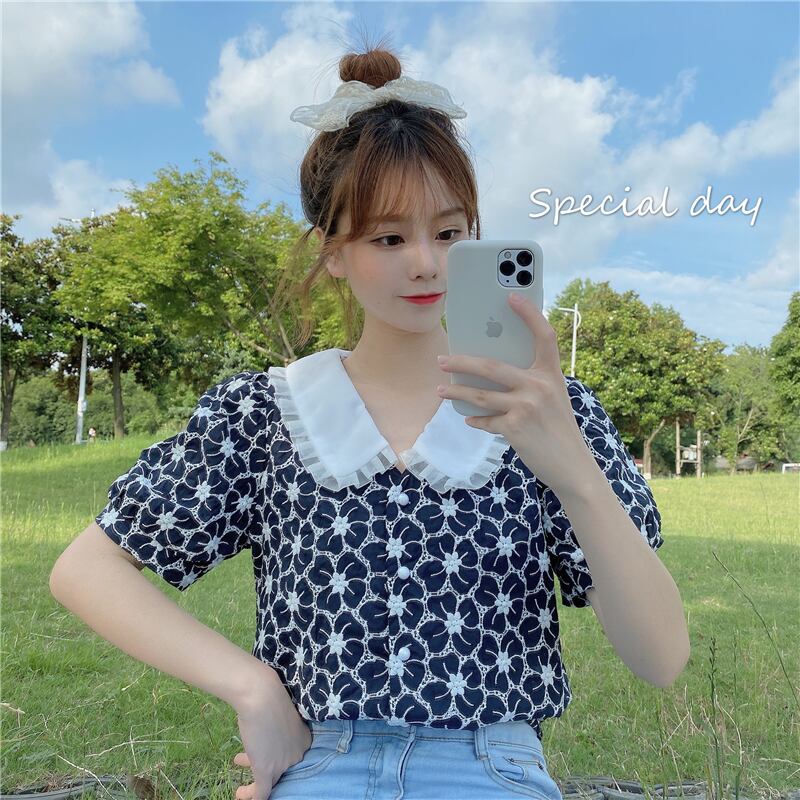 ✞ トップス 刺繍カラー半袖スリーブシャツブラウス ショート ステッチ ✞ゴスロリ SM ミリ 甘ロリ クラロリ 和ロリ エレガント 黒ロリ 姫ロリ 華ロリ BB-BB2023264