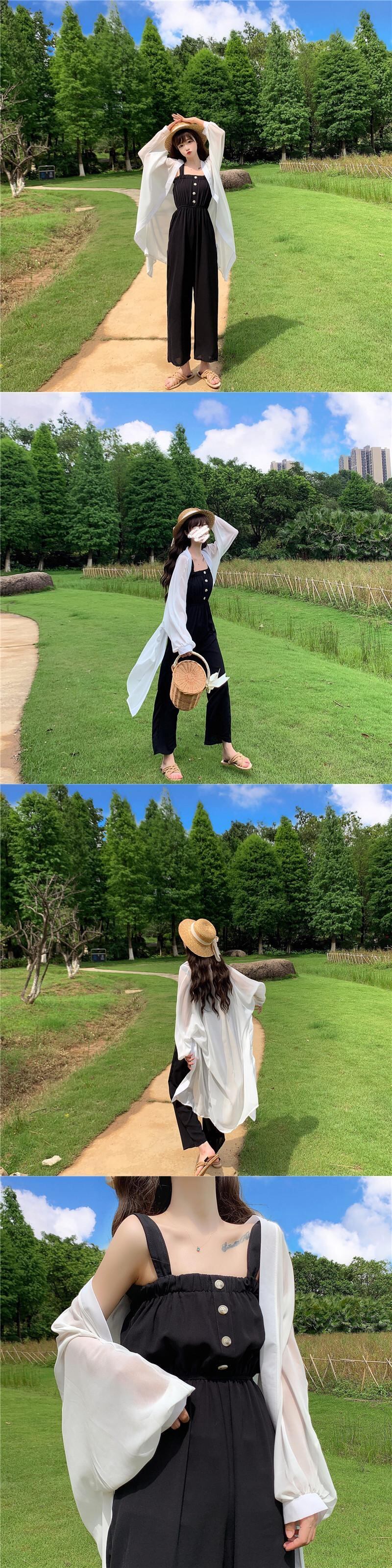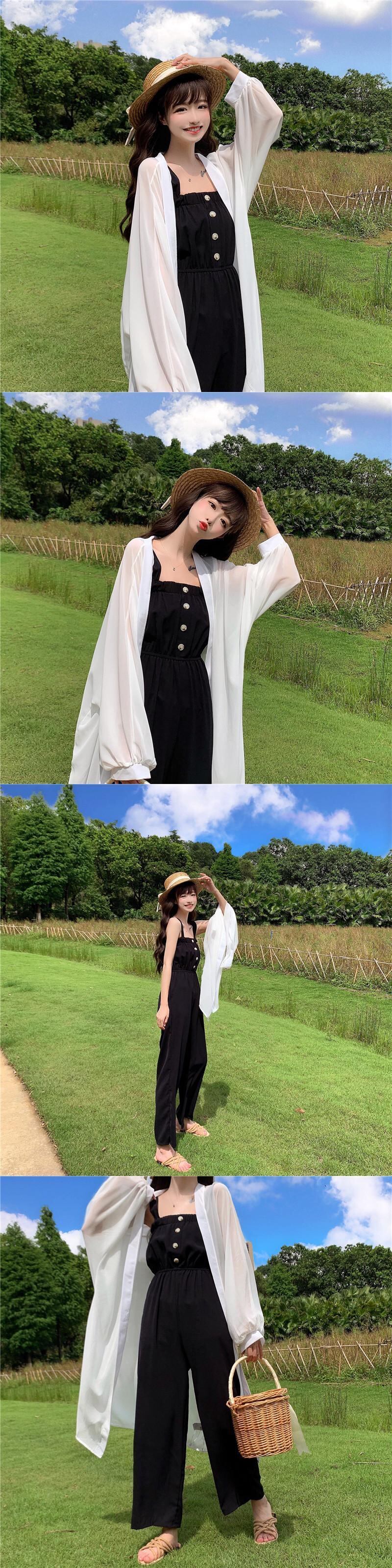 色:ホワイトスモックコート,黒のジャンプスーツ,ライトグリーンのジャンプスーツ