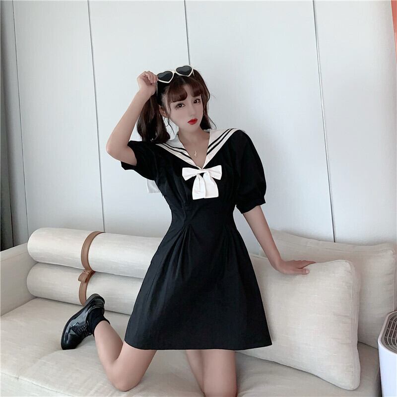 ✞ ネイビーきれいめ☆スリーブスタンダードダークラインウエストすっきり☆着痩せリボンブラックスカート レトロ ✞ゴスロリ SM ミリ 甘ロリ クラロリ 和ロリ エレガント 黒ロリ 姫ロリ 華ロリ BB-BB2194119