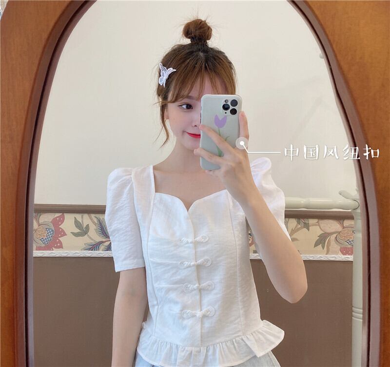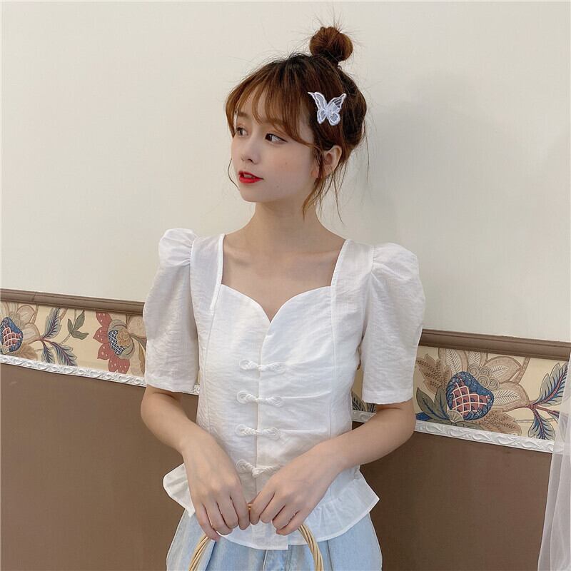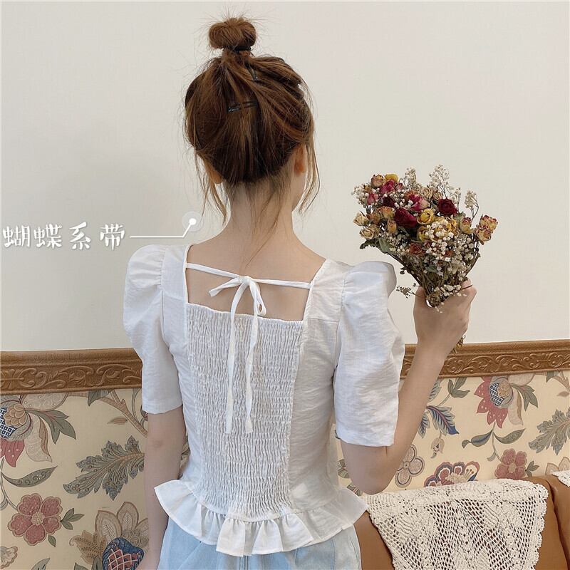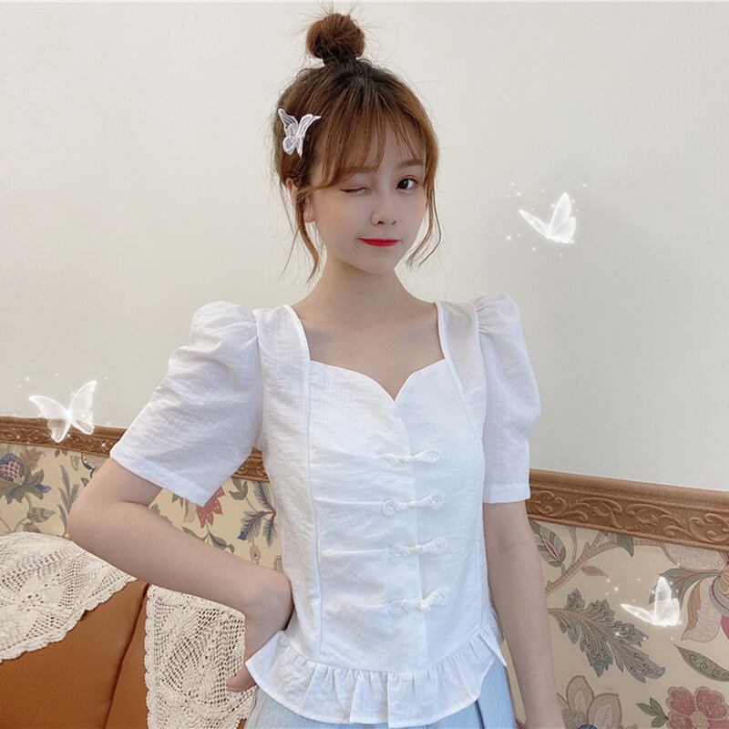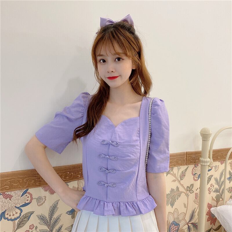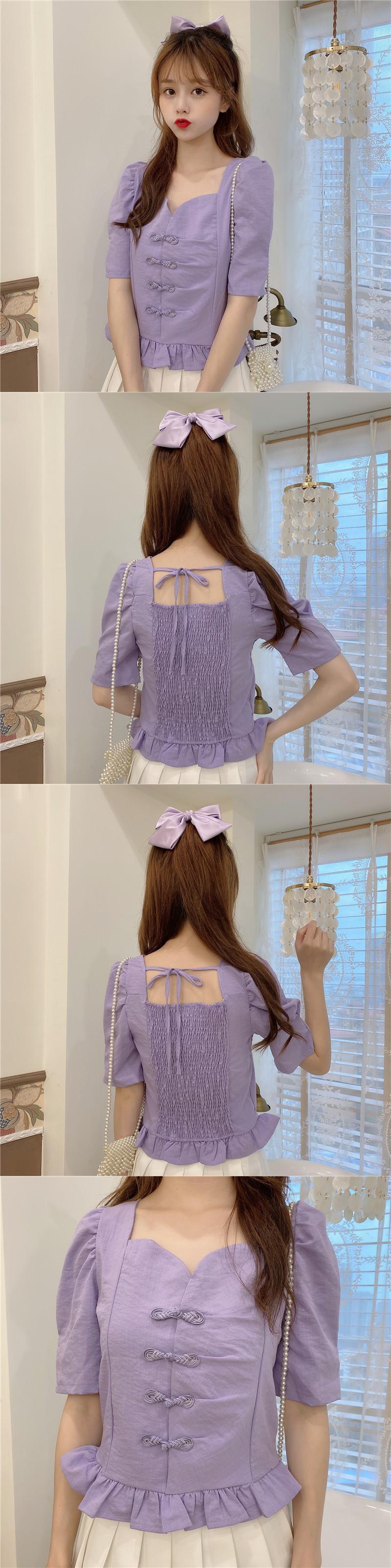 ✞ サマースタンダードバックルプリーツスリーブショートシャツブラウス大人女子☆ レトロ スウィート 夏物 スクウェア ✞ゴスロリ SM ミリ 甘ロリ クラロリ 和ロリ エレガント 黒ロリ 姫ロリ 華ロリ BB-BB6540582