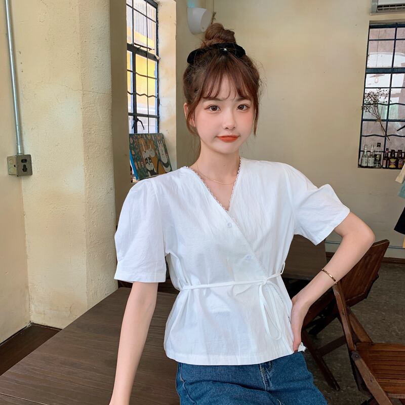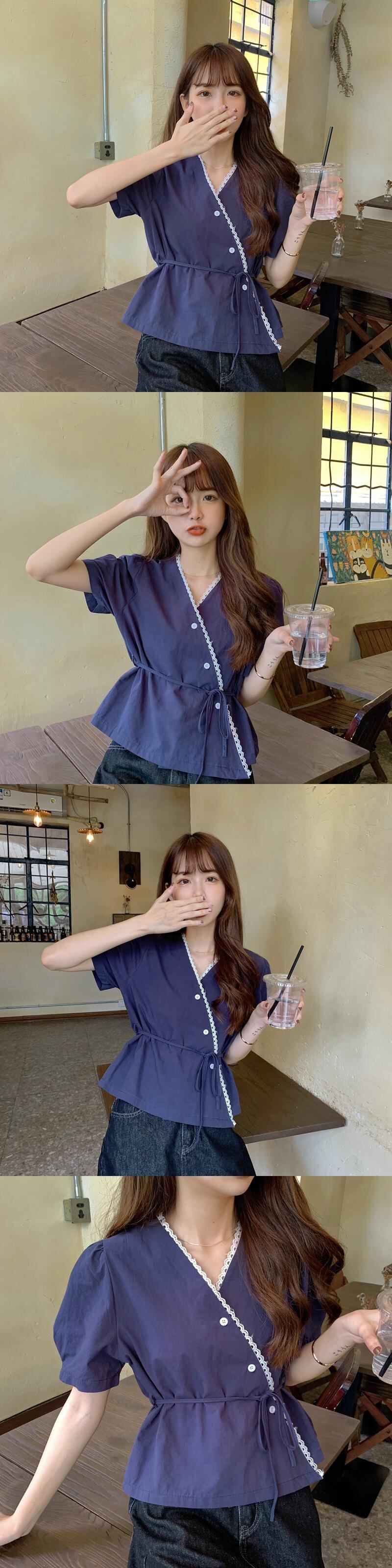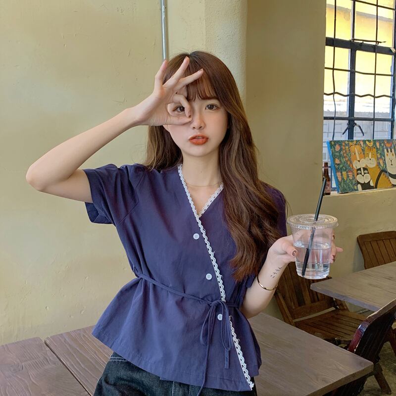 ✞ きれいめ☆ショートシャツブラウススタンダードVネックレースウエストすっきり☆着痩せトップス レトロ スウィート ステッチ ✞ゴスロリ SM ミリ 甘ロリ クラロリ 和ロリ エレガント 黒ロリ 姫ロリ 華ロリ BB-BB6652155