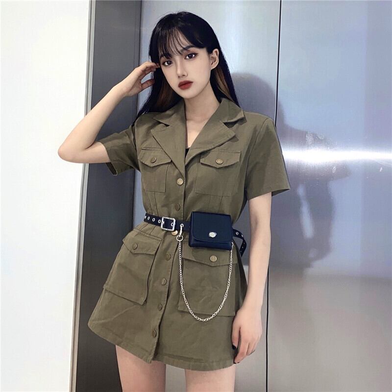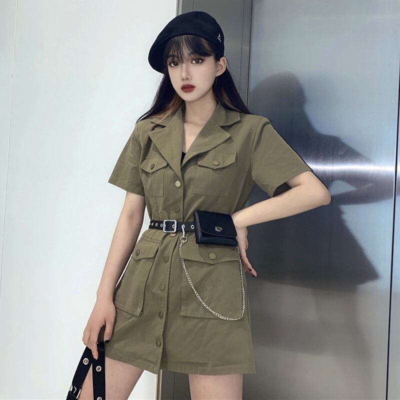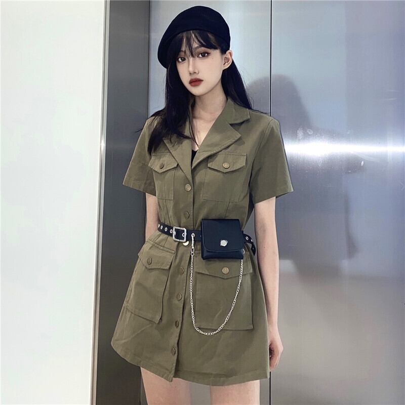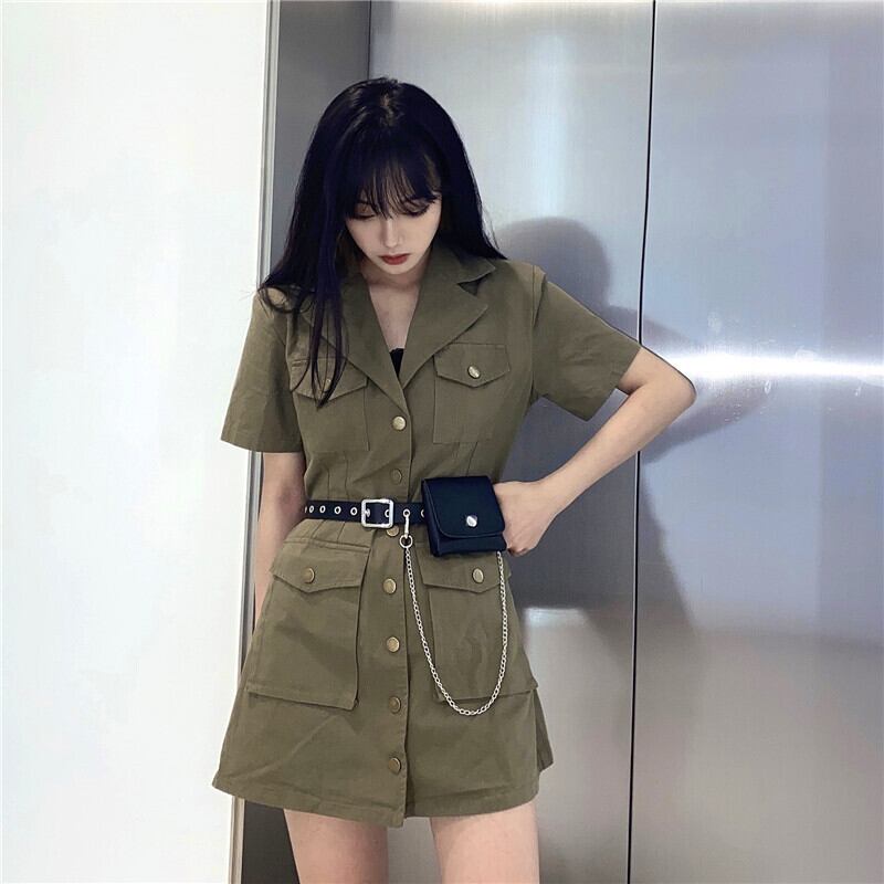 色:y緑ワンピース,ベルトウエストバッグ+チェーンワンピース