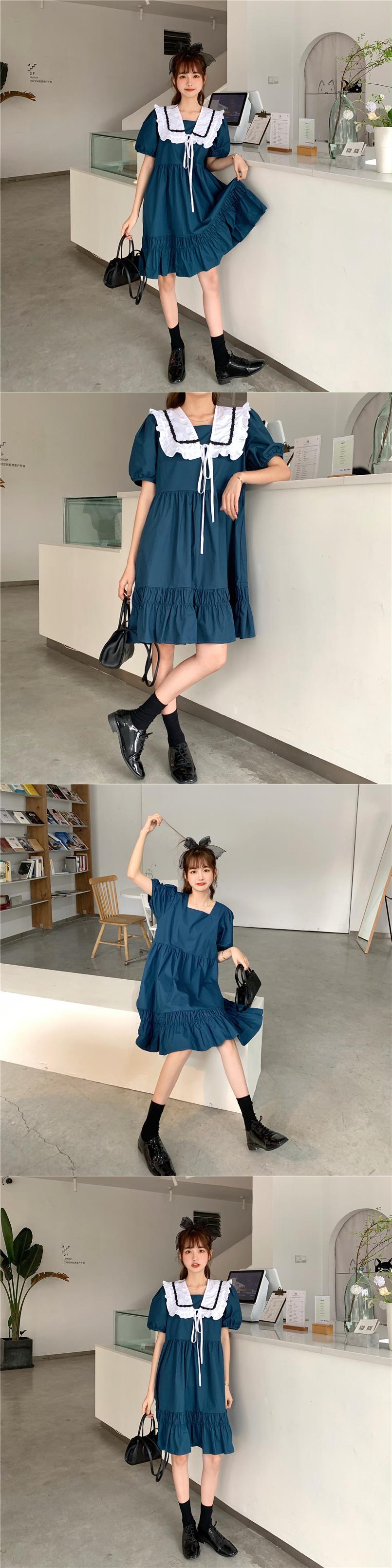 ✞ スカート きれいめ☆ネイビーレーススリーブ スクウェア ✞ゴスロリ SM ミリ 甘ロリ クラロリ 和ロリ エレガント 黒ロリ 姫ロリ 華ロリ BB-BB5771451