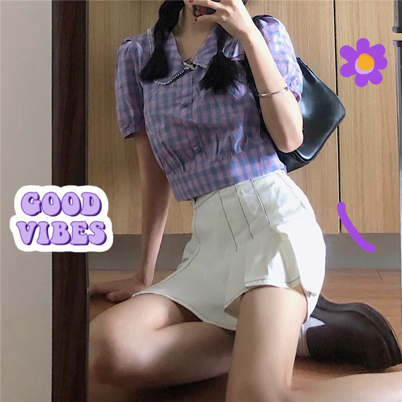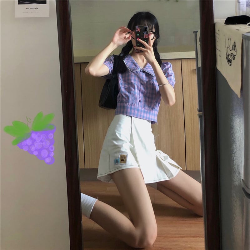 色:紫のシャツワンピース,ホワイトプリーツキュロットシングルピース