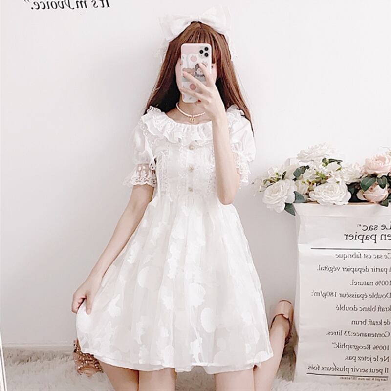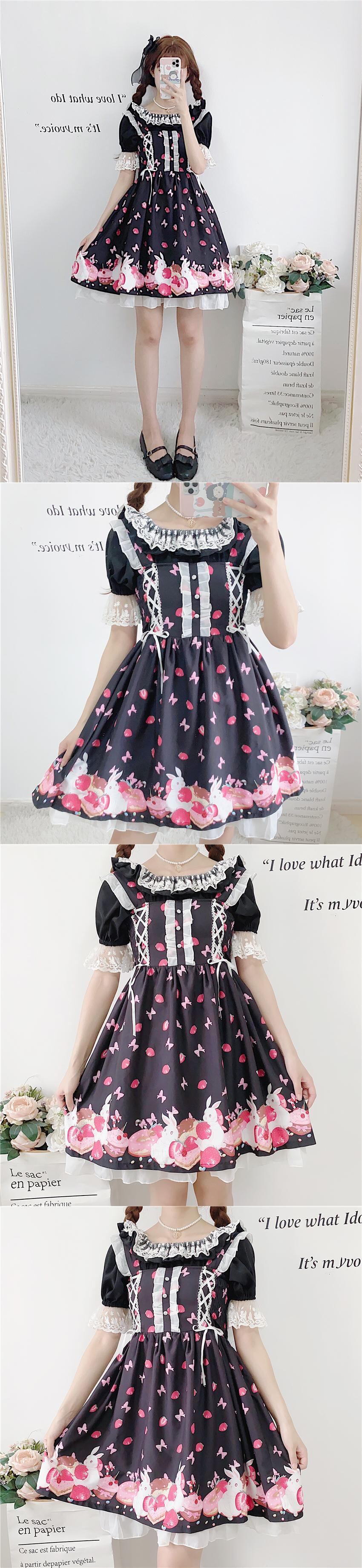 ✞ 白&黒レーススリーブショートワンピースOP ランタンスリーブ スウィート ✞ゴスロリ SM ミリ 甘ロリ クラロリ 和ロリ エレガント 黒ロリ 姫ロリ 華ロリ BB-BB4930177