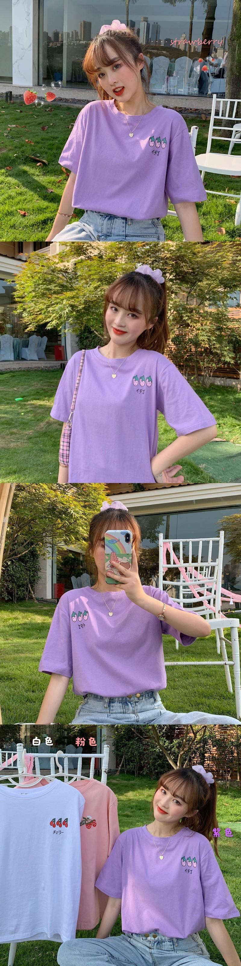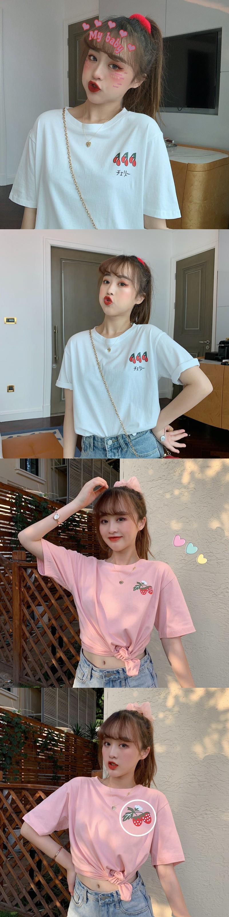 ✞ 「イチゴ♥」「チェリー♥」プリントラウンドネックTシャツ トップス ✞ゴスロリ SM ミリ 甘ロリ クラロリ 和ロリ エレガント 黒ロリ 姫ロリ 華ロリ BB-BB3370151