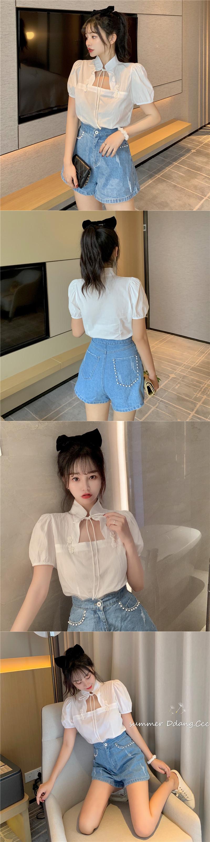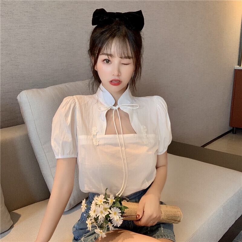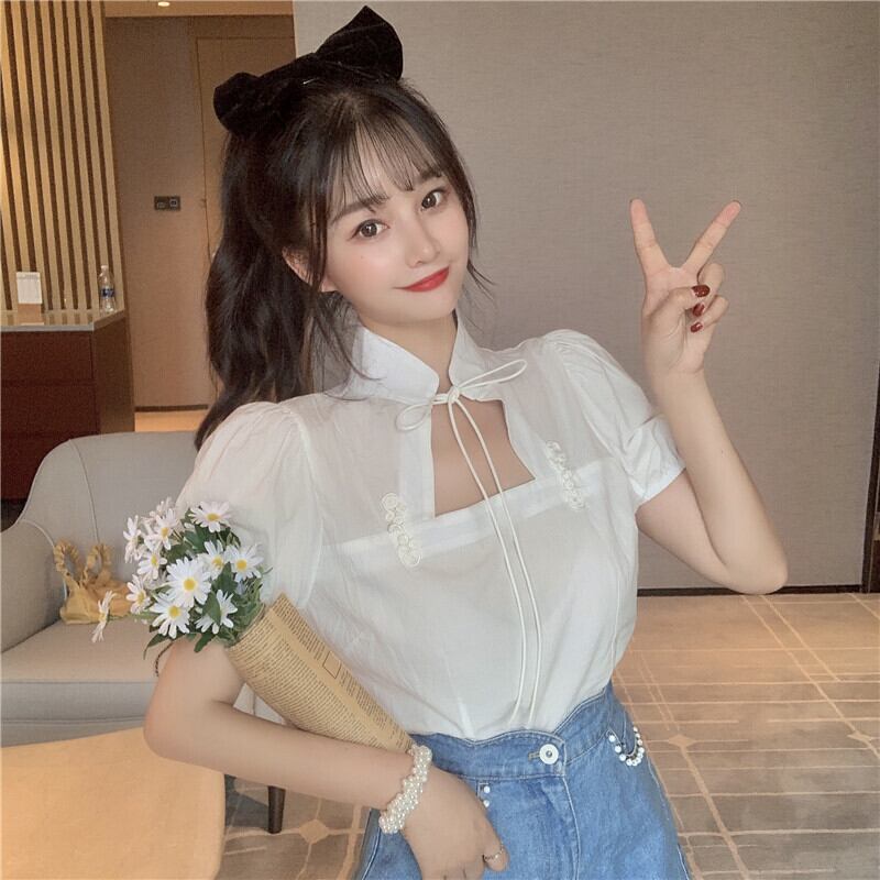 ✞ きれいめ☆スタンダードスタンドカラーバックルスリーブショートシャツブラウス レトロ スウィート ✞ゴスロリ SM ミリ 甘ロリ クラロリ 和ロリ エレガント 黒ロリ 姫ロリ 華ロリ BB-BB0565878