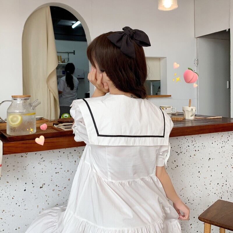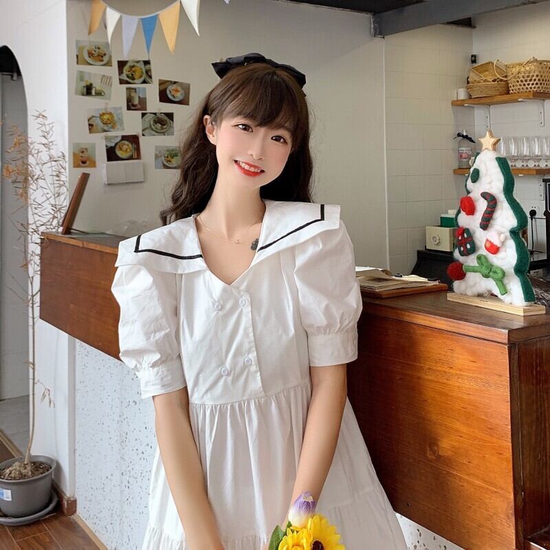 ✞ ドレス セーラーカラー♥シフォンくしゅくしゅワンピース きれいめ☆ネイビースリーブ♥カワイイ♥スカート スウィート ✞ゴスロリ SM ミリ 甘ロリ クラロリ 和ロリ エレガント 黒ロリ 姫ロリ 華ロリ BB-BB7327625