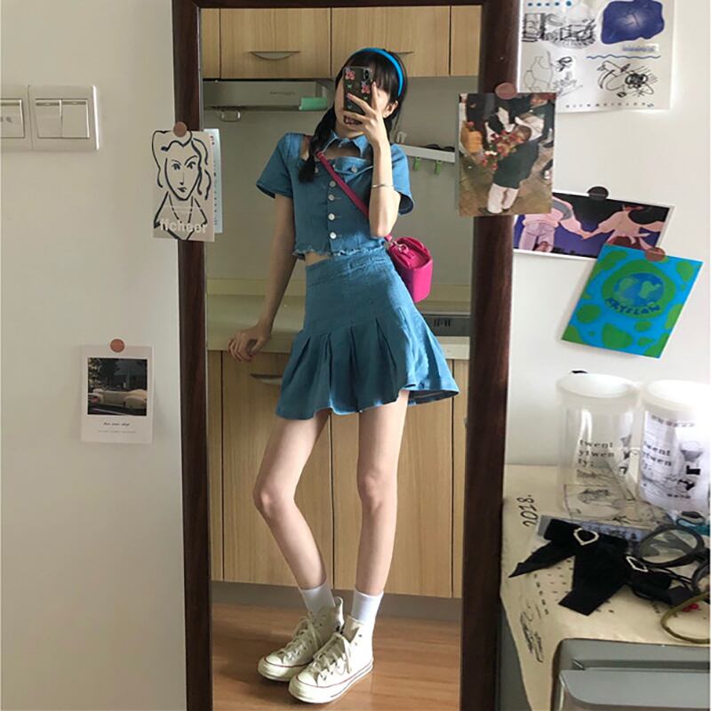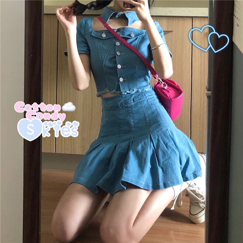 色:デニムジャケットワンピース,デニムプリーツスカートワンピース