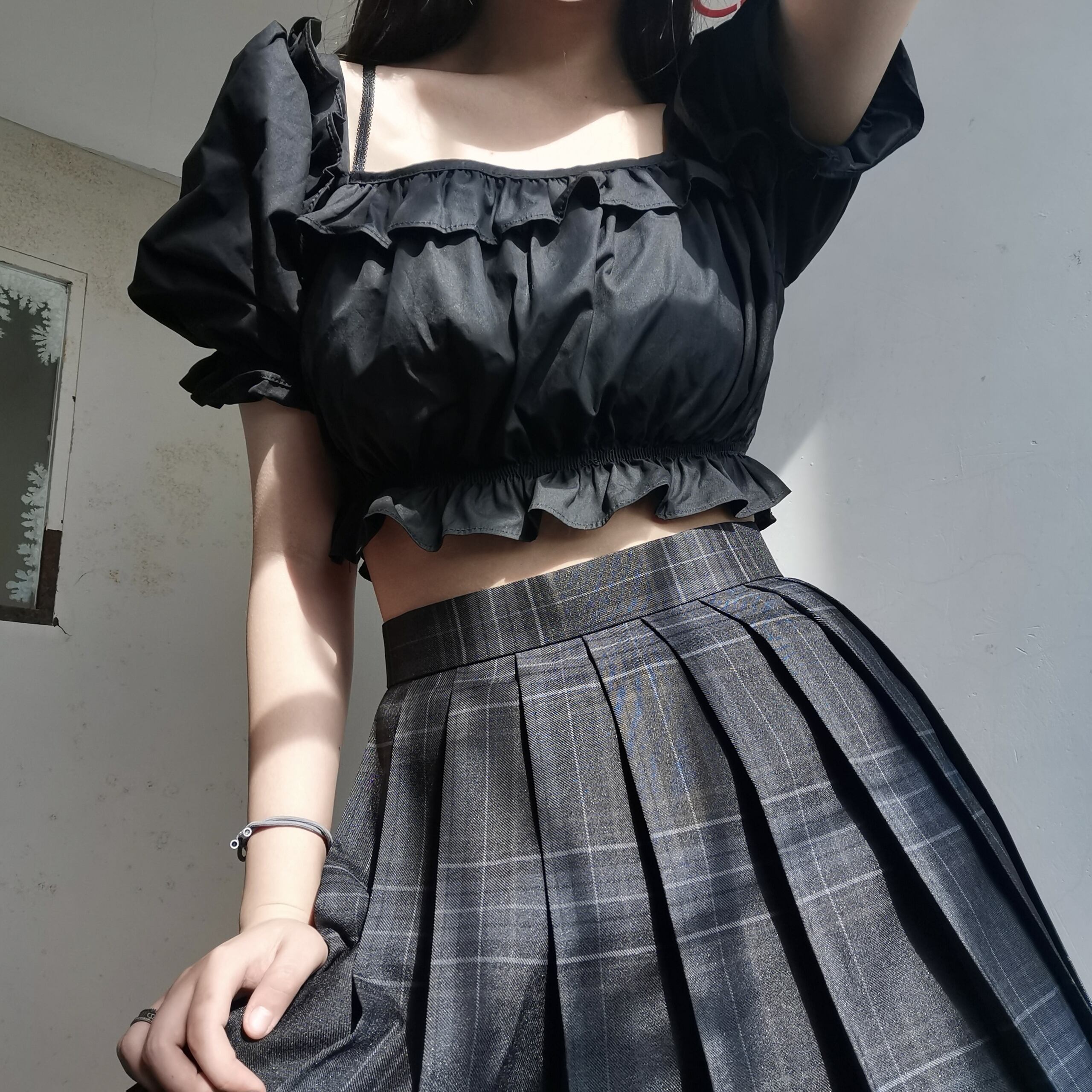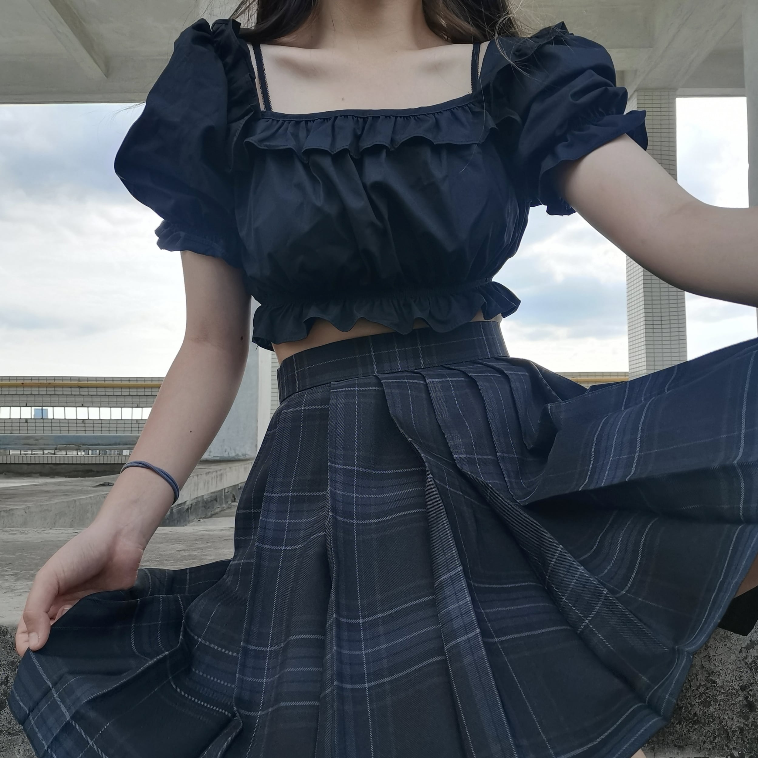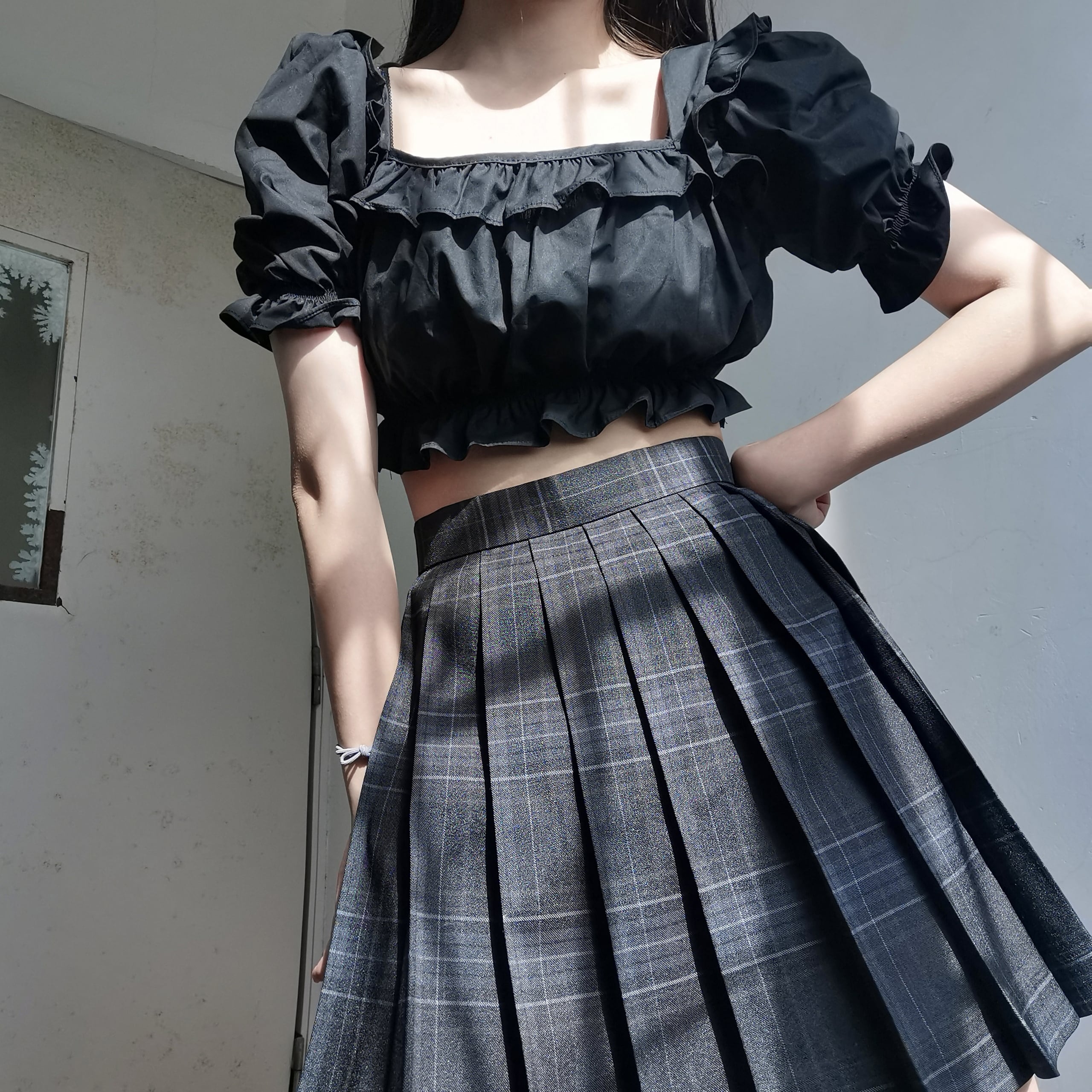 ✞ ダークスリーブショートジャケット スタンダードチェック柄プリーツスカート レトロ スクウェア ✞ゴスロリ SM ミリ 甘ロリ クラロリ 和ロリ エレガント 黒ロリ 姫ロリ 華ロリ BB-BB2584062