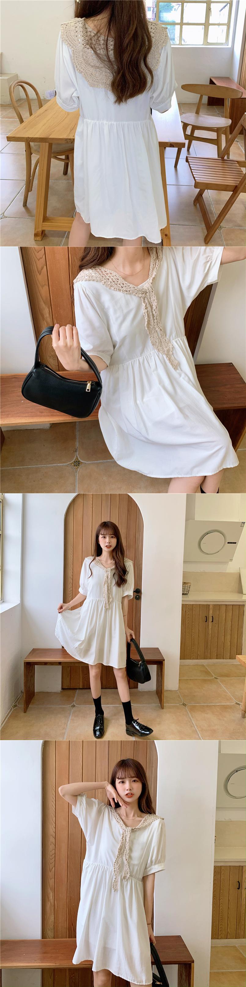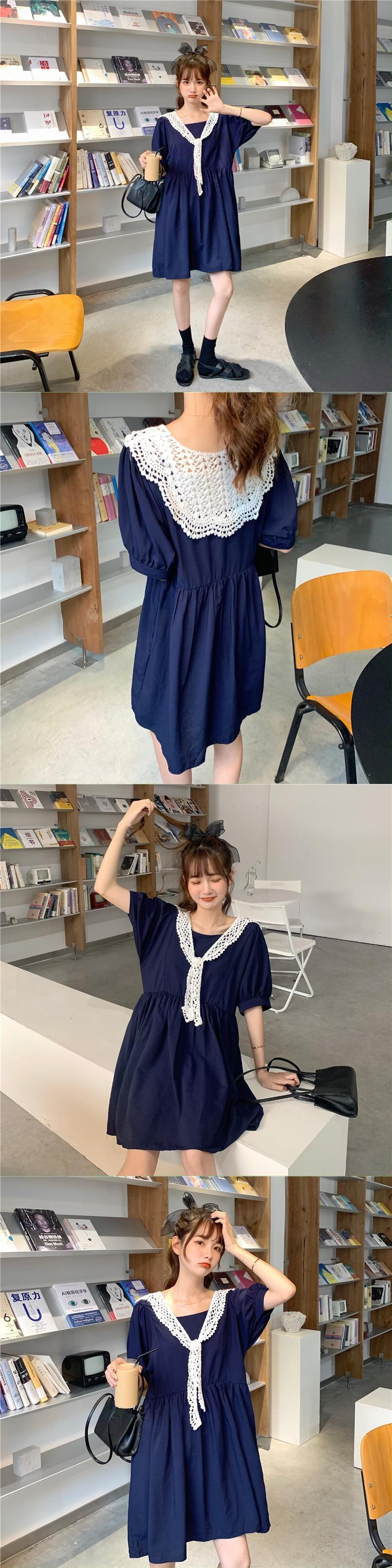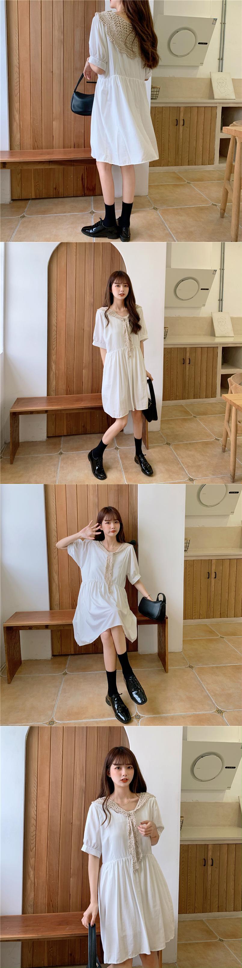 ✞ 襟元レース&パフスリーブふんわりワンピース OP スウィート ✞ゴスロリ SM ミリ 甘ロリ クラロリ 和ロリ エレガント 黒ロリ 姫ロリ 華ロリ BB-BB7720817