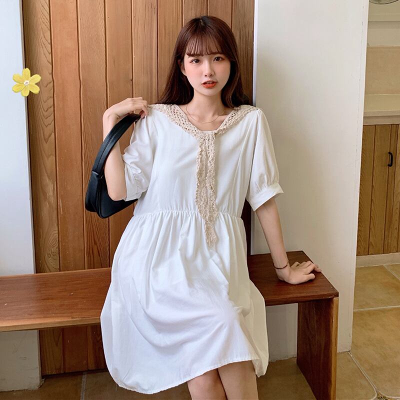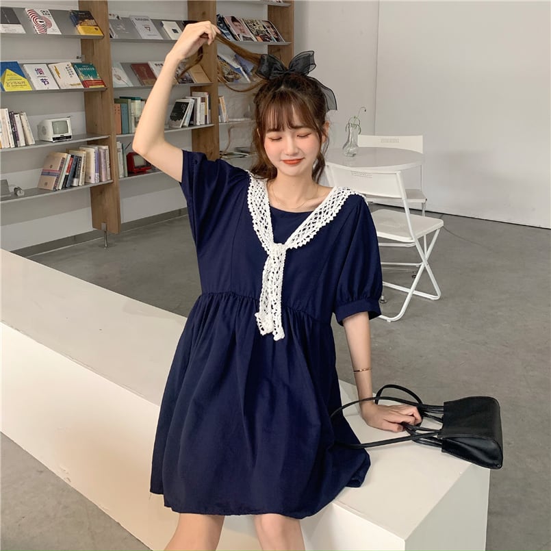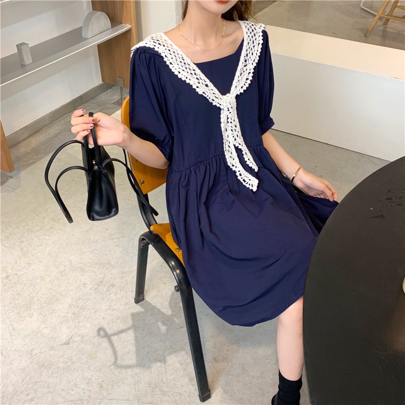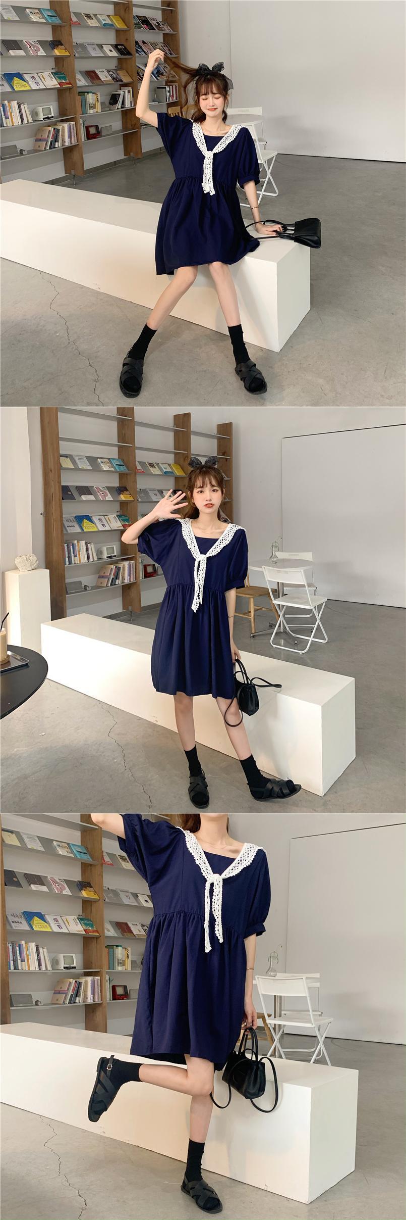 ✞ 襟元レース&パフスリーブふんわりワンピース OP スウィート ✞ゴスロリ SM ミリ 甘ロリ クラロリ 和ロリ エレガント 黒ロリ 姫ロリ 華ロリ BB-BB7720817