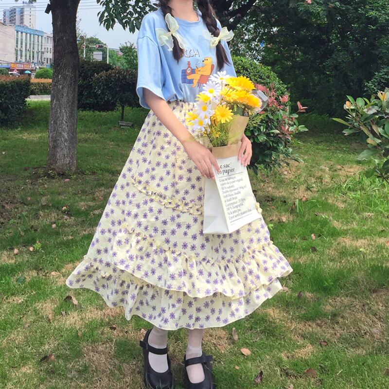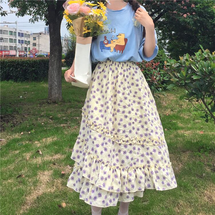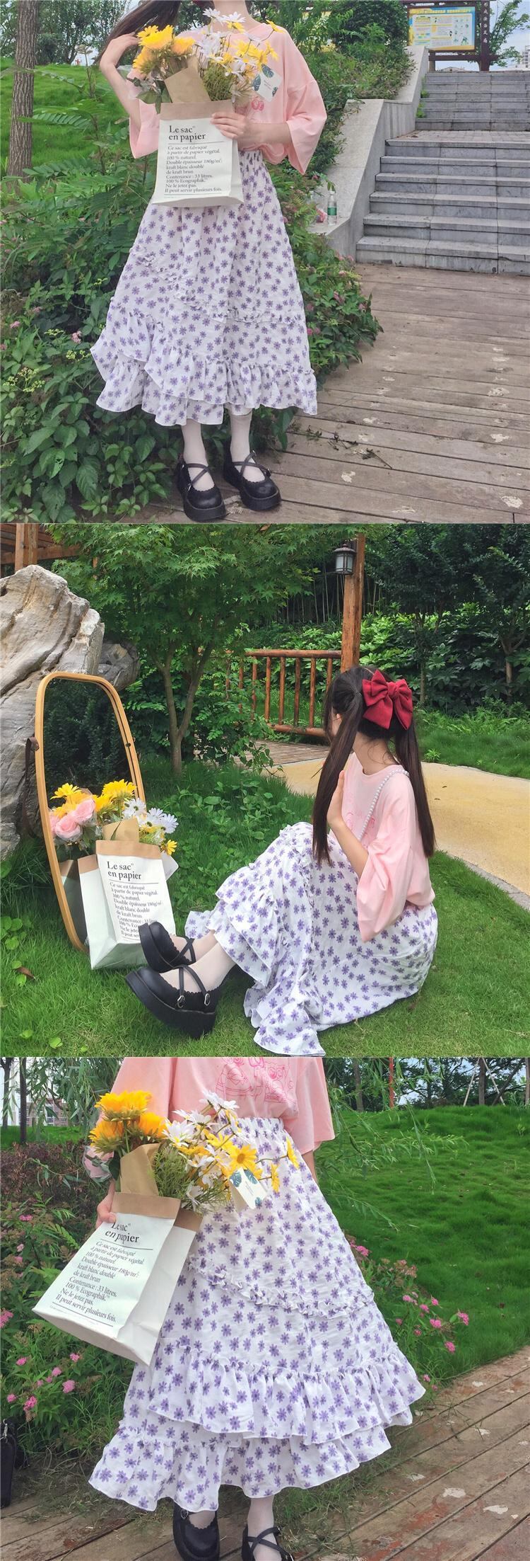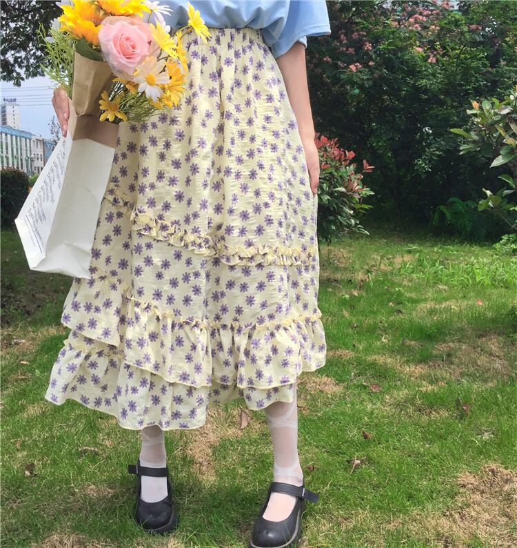 ✞ サマー花柄ラッフルスカート 大人女子☆ 夏物 ステッチ ✞ゴスロリ SM ミリ 甘ロリ クラロリ 和ロリ エレガント 黒ロリ 姫ロリ 華ロリ BB-BB0629826