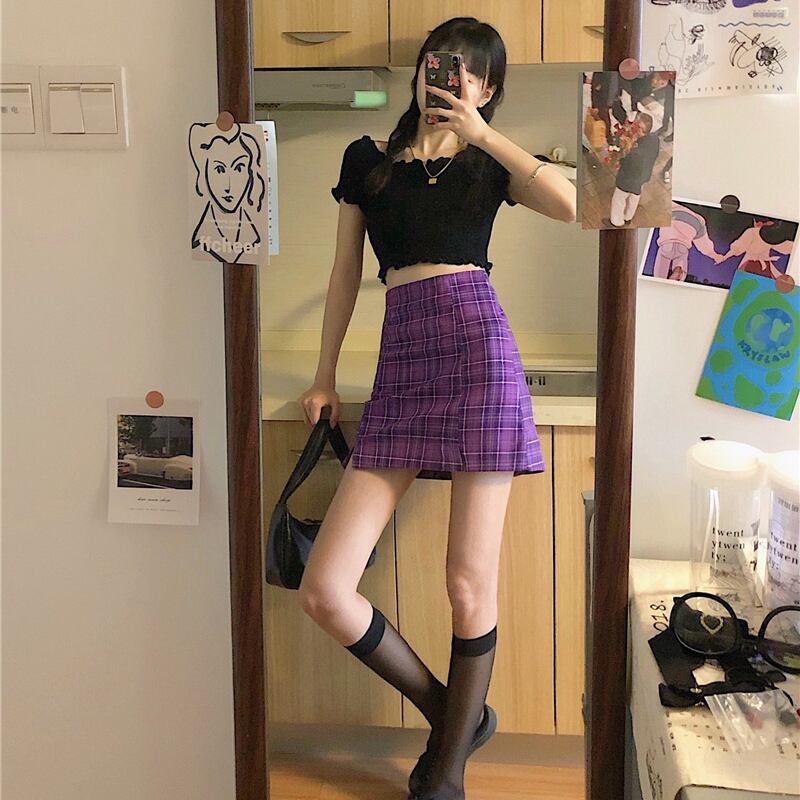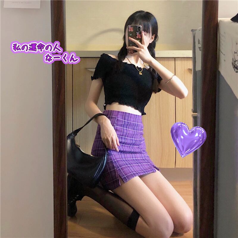色:黒シャツワンピース,パープルチェック柄スカートワンピース