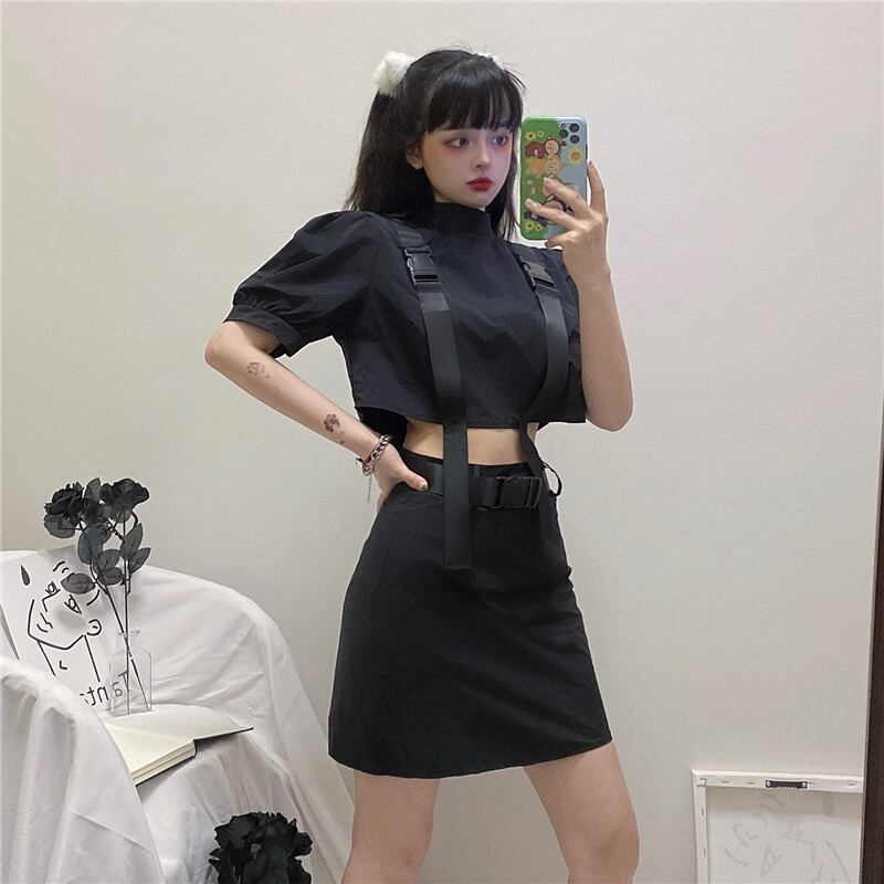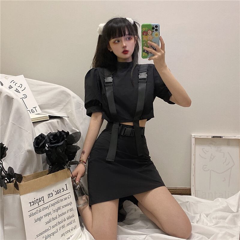 ✞ きれいめ☆ダークブラックラウンドネックスリーブショートトップス ✞ゴスロリ SM ミリ 甘ロリ クラロリ 和ロリ エレガント 黒ロリ 姫ロリ 華ロリ BB-BB0343781