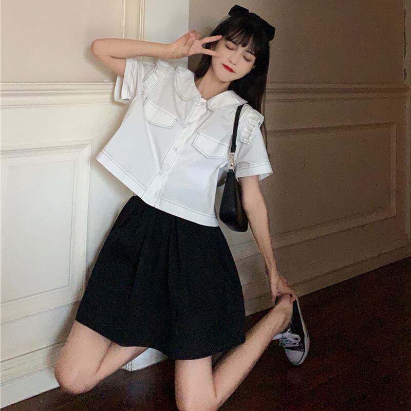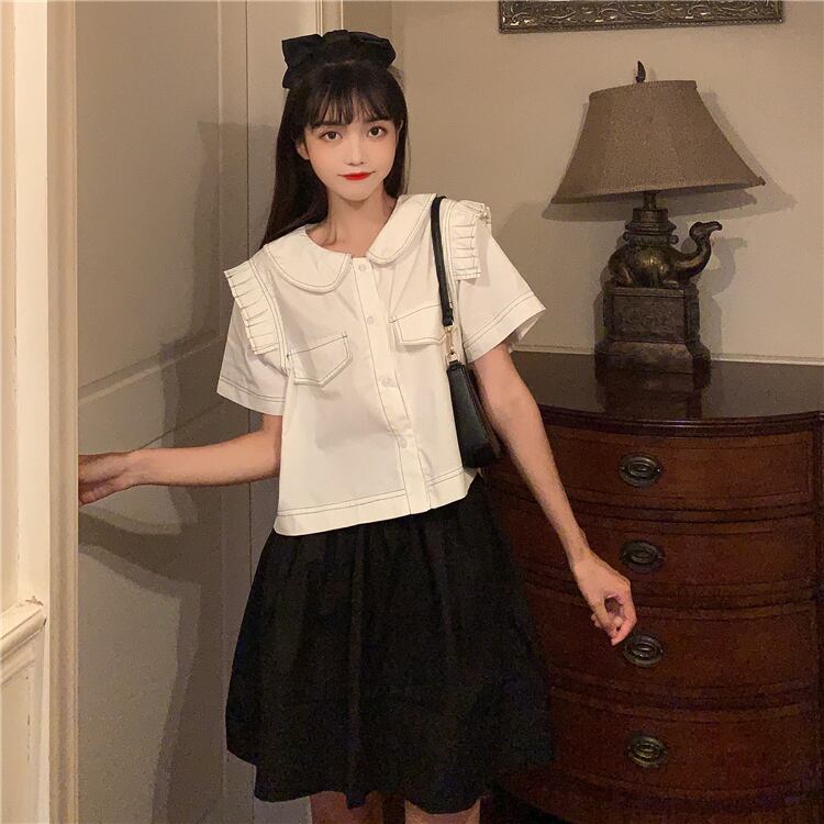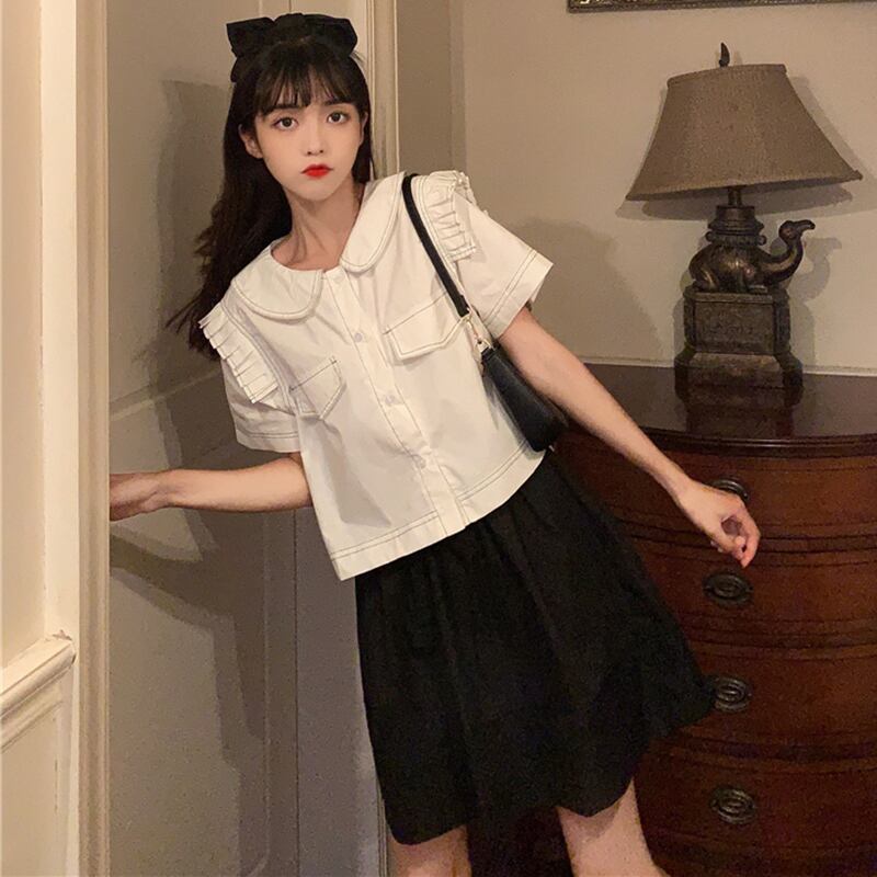 ✞ ポケットシャツブラウス♥カワイイ♥スカート ✞ゴスロリ SM ミリ 甘ロリ クラロリ 和ロリ エレガント 黒ロリ 姫ロリ 華ロリ BB-BB3157905