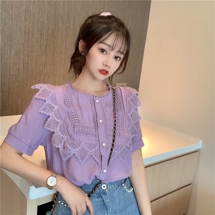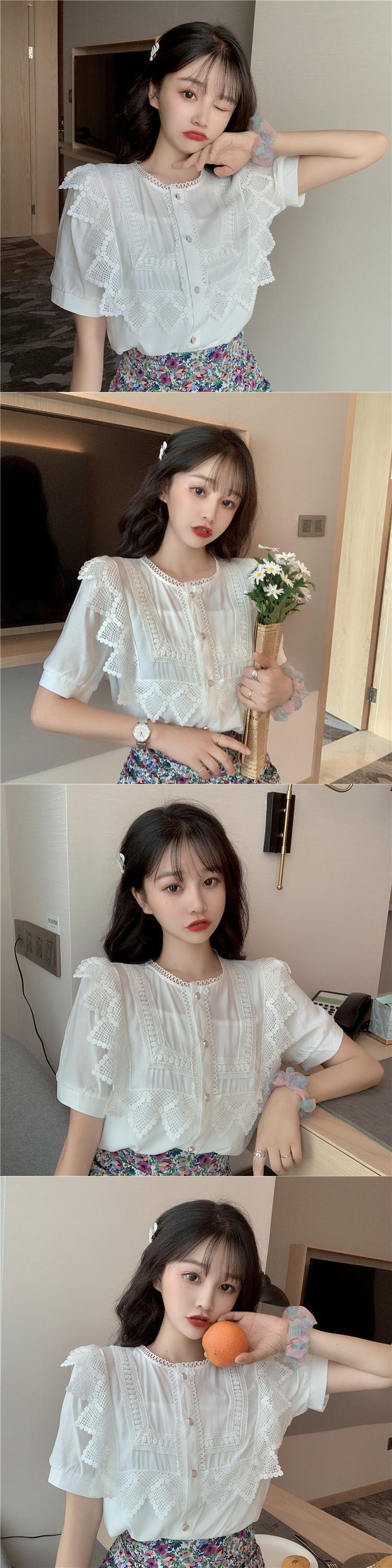 ✞ レースラウンドネックソリッド カラーシャツブラウスジャケット スウィート ソリッドカラー ステッチ ✞ゴスロリ SM ミリ 甘ロリ クラロリ 和ロリ エレガント 黒ロリ 姫ロリ 華ロリ BB-BB6450160