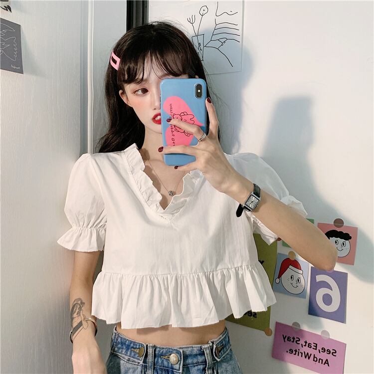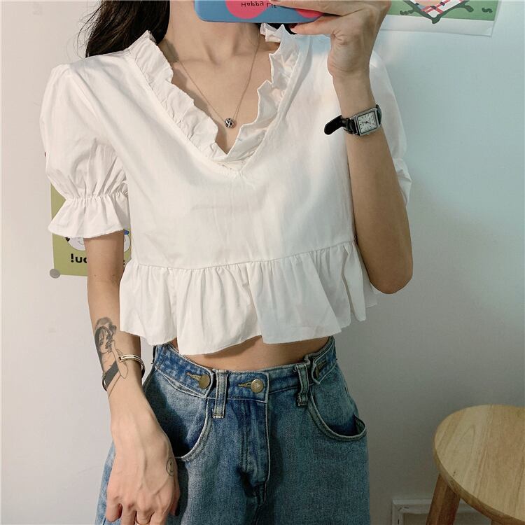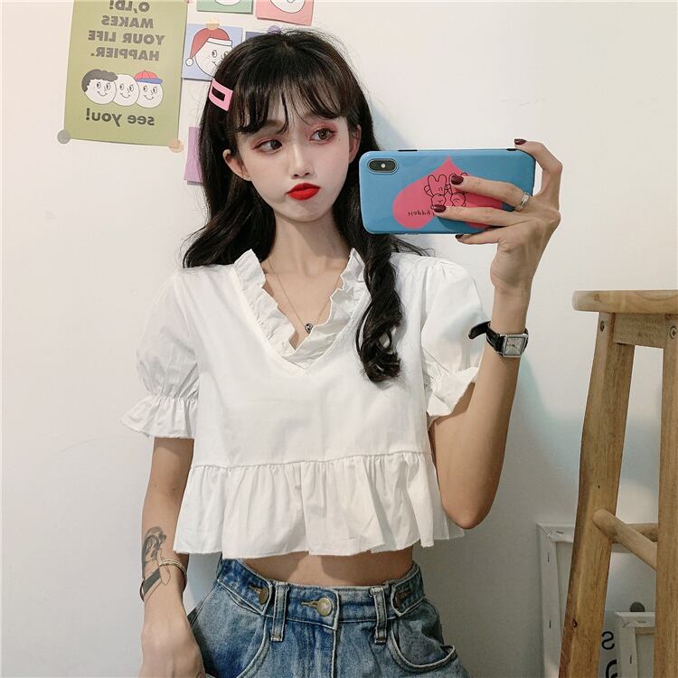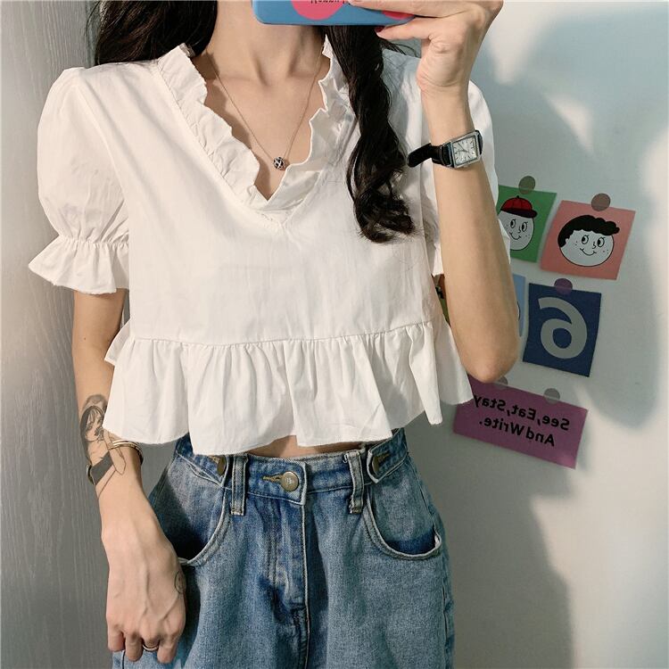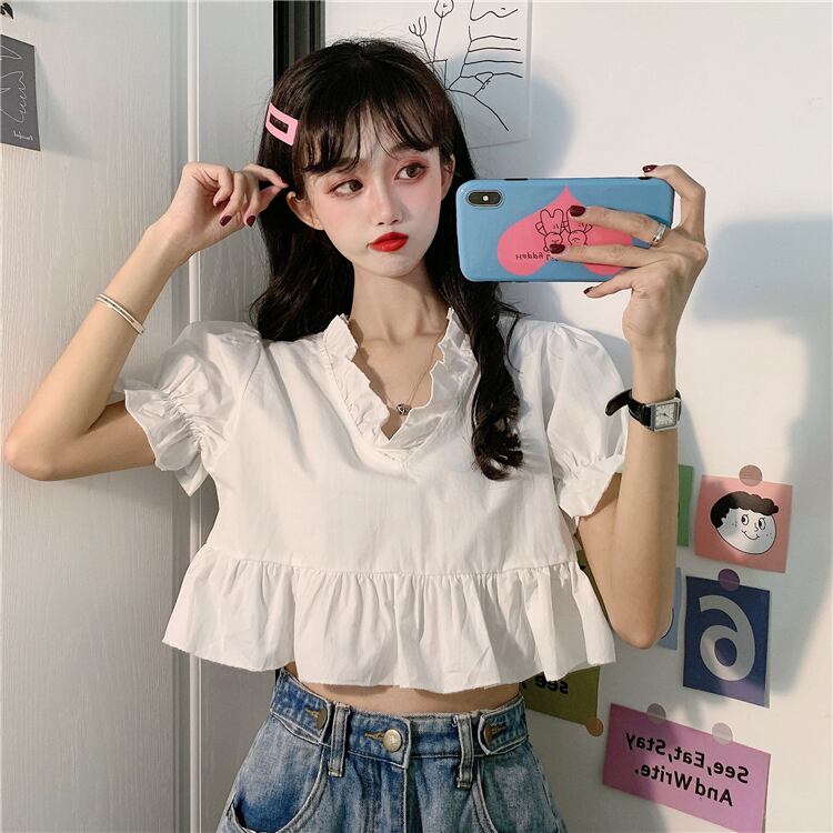 ✞ Vネックスリーブショートシャツブラウス大人女子☆ ステッチ ✞ゴスロリ SM ミリ 甘ロリ クラロリ 和ロリ エレガント 黒ロリ 姫ロリ 華ロリ BB-BB1614258