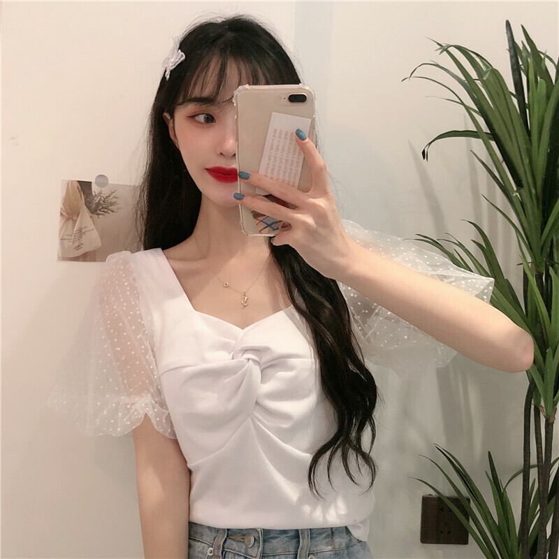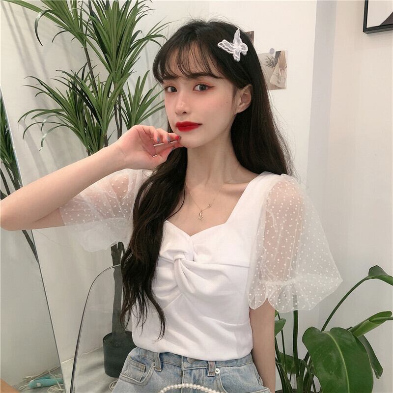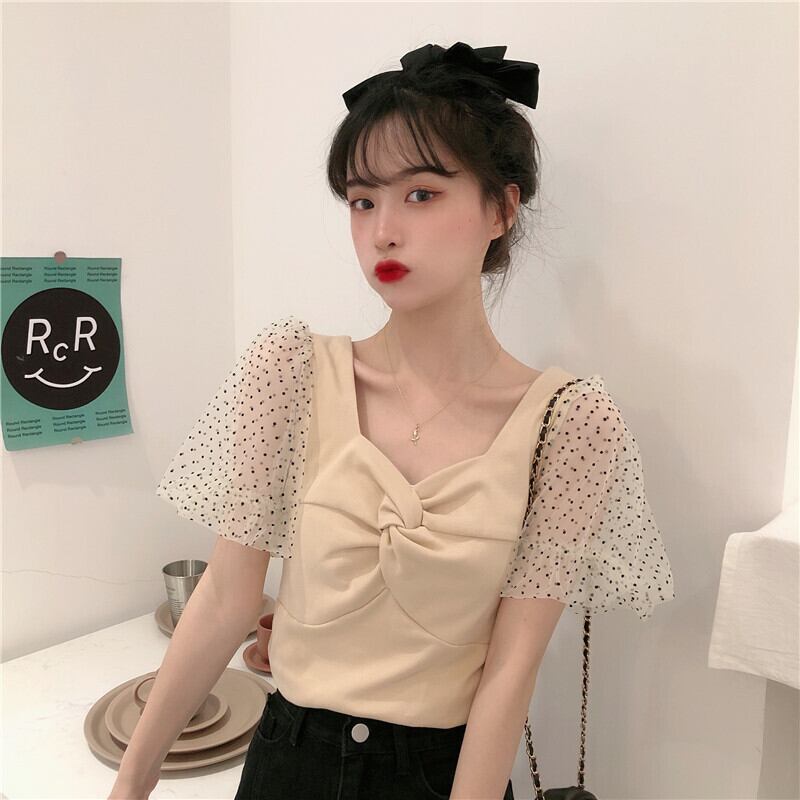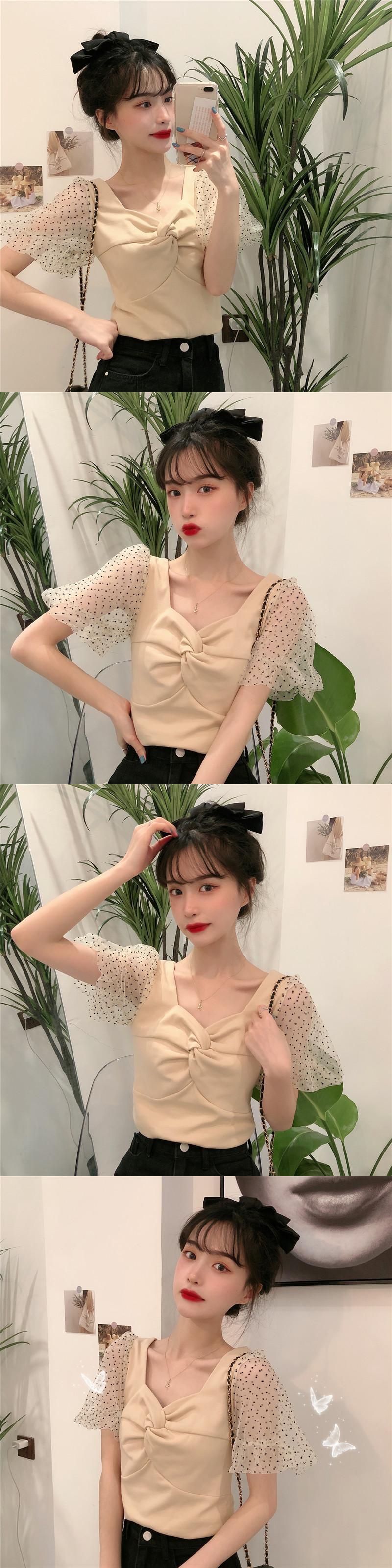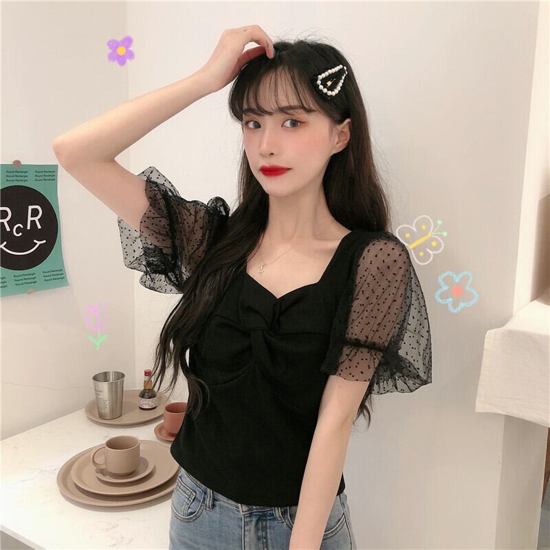 ✞ Tシャツ スリム水玉スリーブクロスプリーツショートトップス 大人女子☆ スウィート ✞ゴスロリ SM ミリ 甘ロリ クラロリ 和ロリ エレガント 黒ロリ 姫ロリ 華ロリ BB-BB3182057