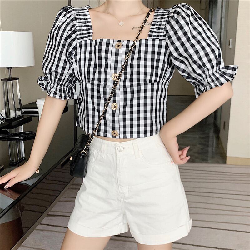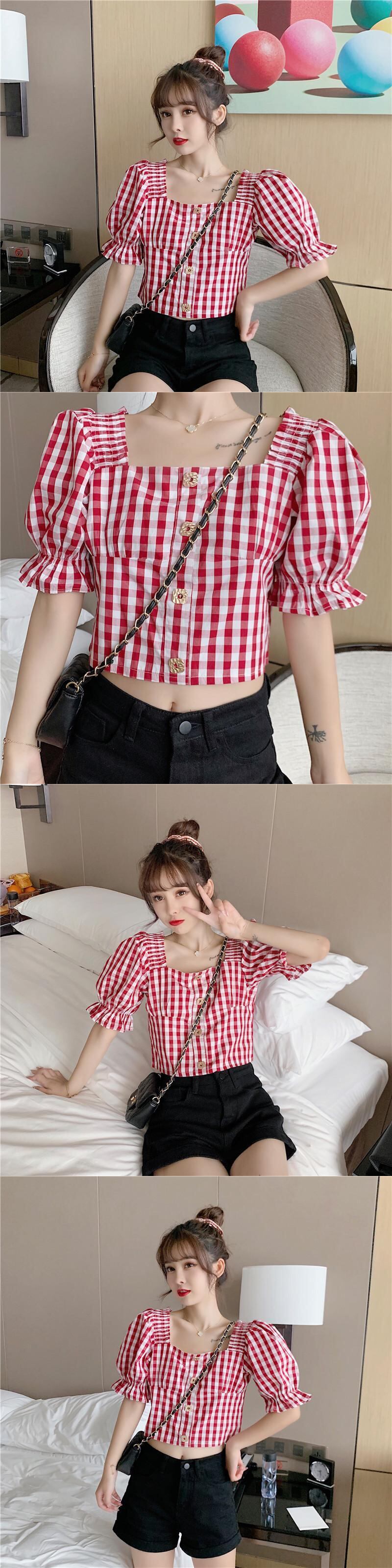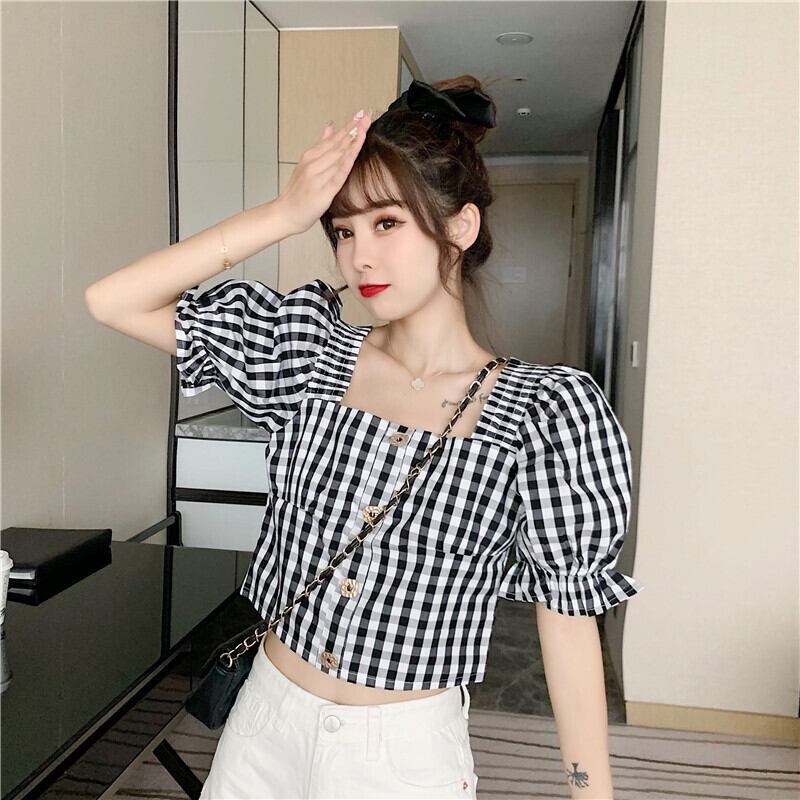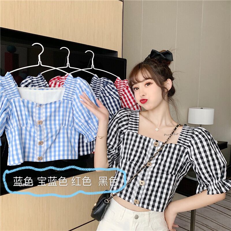 ✞ シャツブラウススタンダードチェック柄♥カワイイ♥ショートトップス レトロ スウィート スクウェア ✞ゴスロリ SM ミリ 甘ロリ クラロリ 和ロリ エレガント 黒ロリ 姫ロリ 華ロリ BB-BB2485585