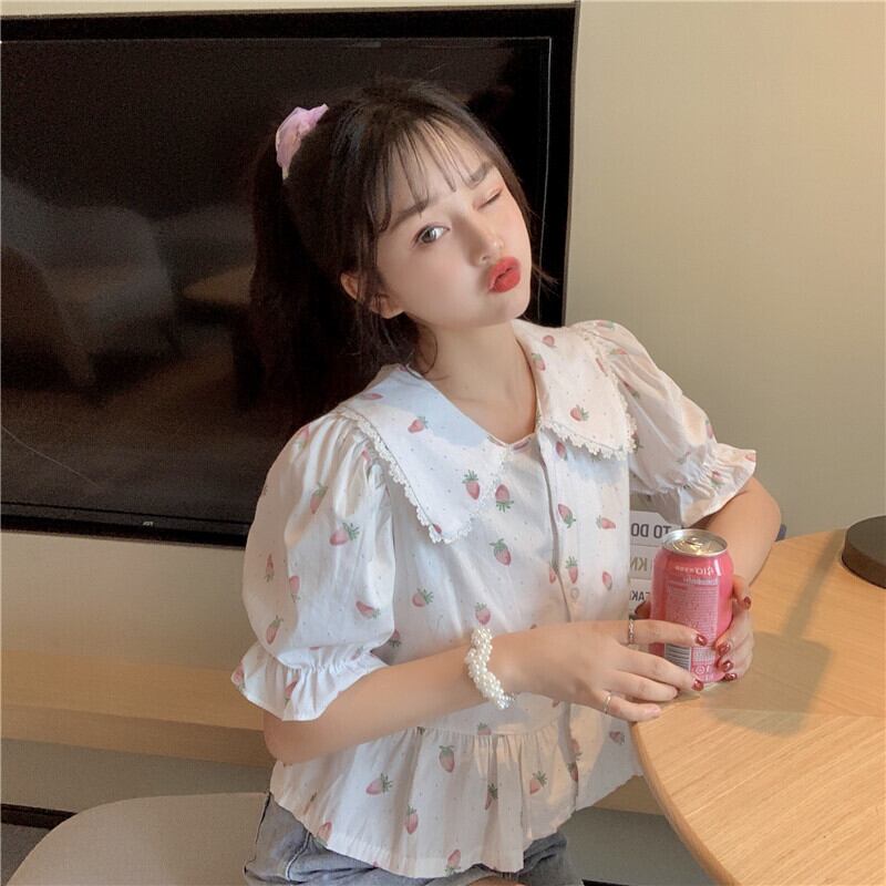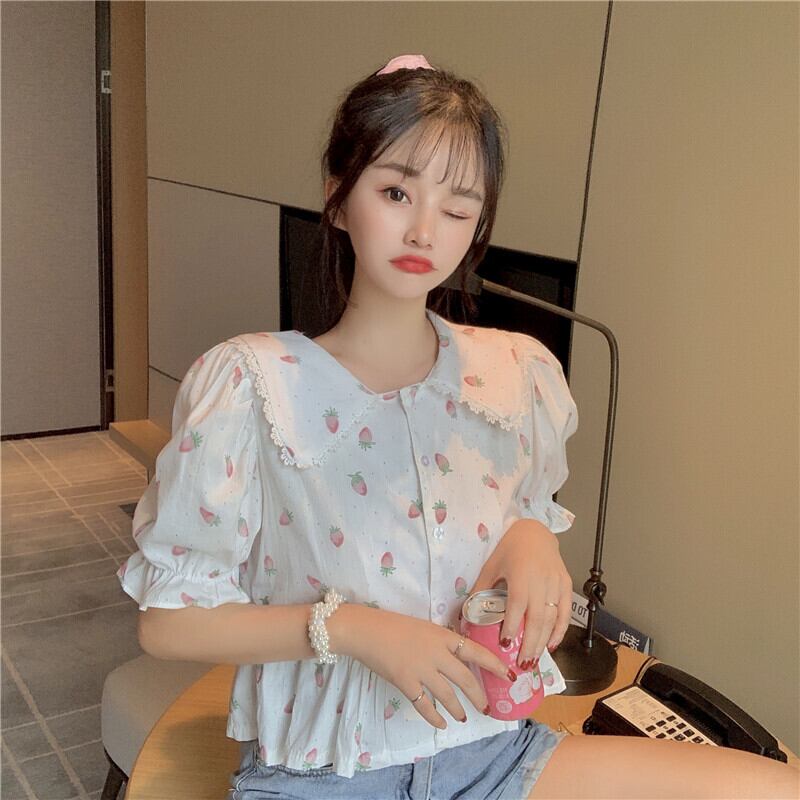 ✞ レーススリーブプリント柄ショートシャツブラウス スウィート ✞ゴスロリ SM ミリ 甘ロリ クラロリ 和ロリ エレガント 黒ロリ 姫ロリ 華ロリ BB-BB1039957