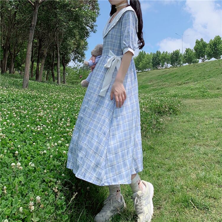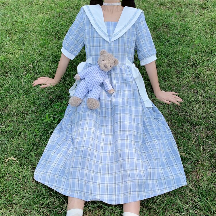 ✞ カラーネイビー半袖スリーブウエストすっきり☆着痩せチェック柄 ショート スウィート ✞ゴスロリ SM ミリ 甘ロリ クラロリ 和ロリ エレガント 黒ロリ 姫ロリ 華ロリ BB-BB2809868
