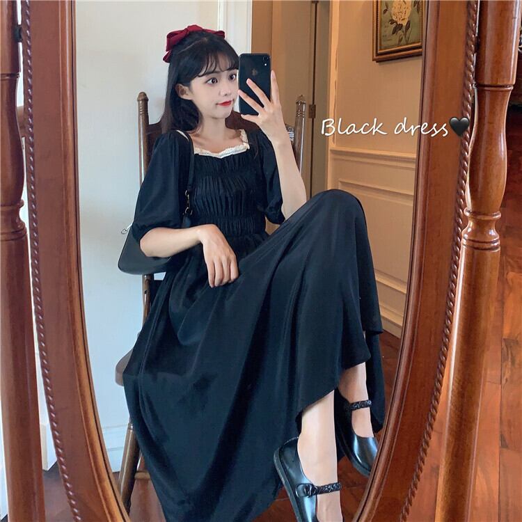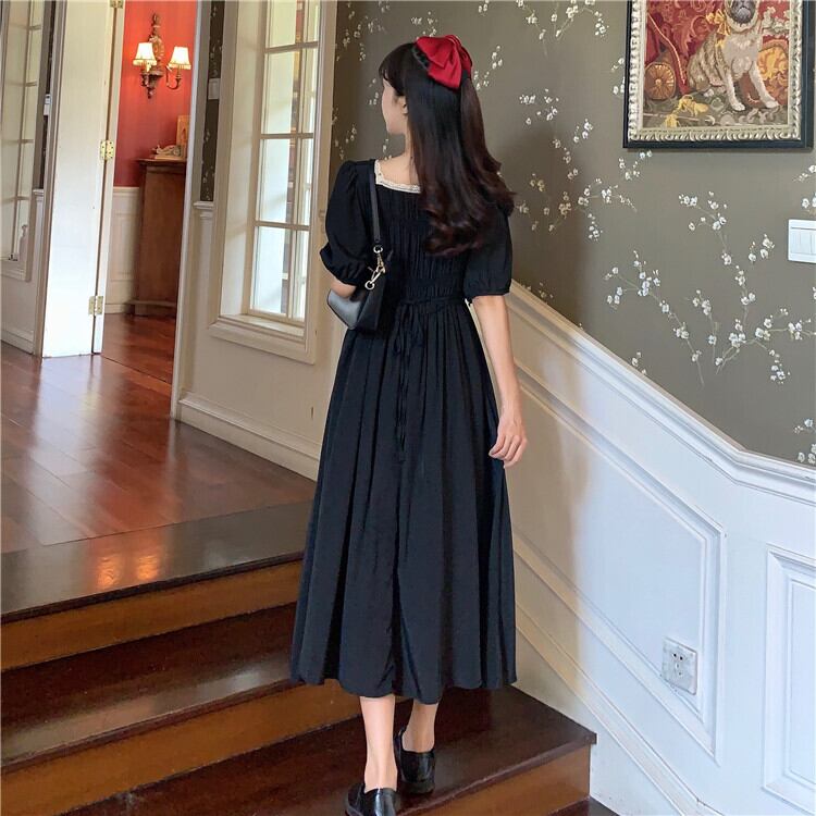 ✞ ドレス ワンピースレースきれいめ☆♥カワイイ♥ストレッチウエストすっきり☆着痩せAラインスカート エラスティック 伸縮 スクウェア ✞ゴスロリ SM ミリ 甘ロリ クラロリ 和ロリ エレガント 黒ロリ 姫ロリ 華ロリ BB-BB4933988