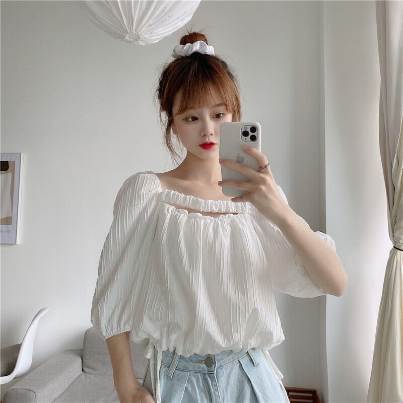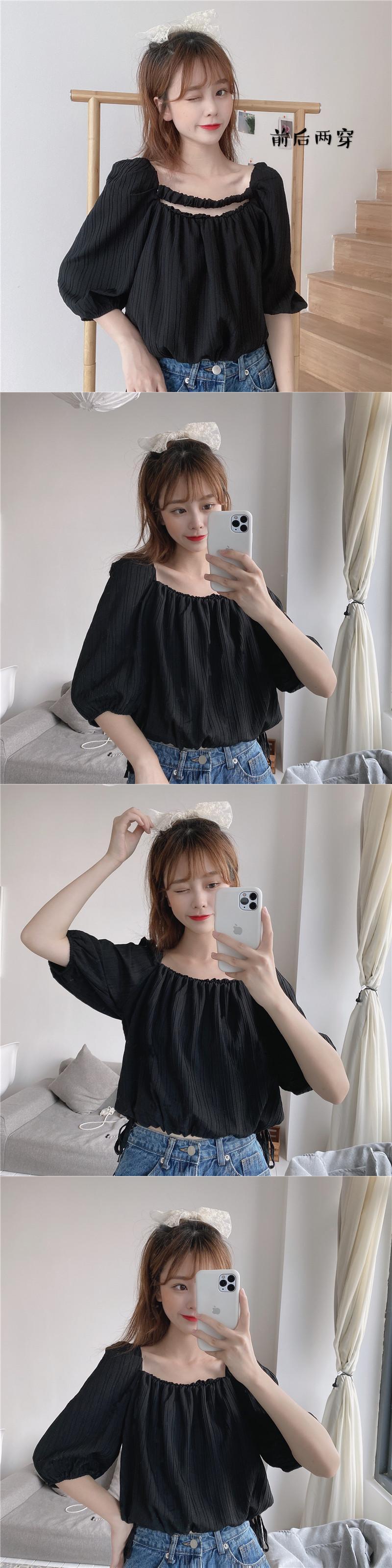 ✞ ギャザーレーススリーブショートシャツブラウス スクウェア ✞ゴスロリ SM ミリ 甘ロリ クラロリ 和ロリ エレガント 黒ロリ 姫ロリ 華ロリ BB-BB9026572