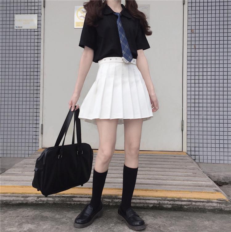 ✞ 清楚きれいめ☆黒シャツブラウストップス or カワイイプリーツスカート 夏服 体型カバー✞ゴスロリ SM ミリ 甘ロリ クラロリ 和ロリ エレガント 黒ロリ 姫ロリ 華ロリ BB-BB1122790
