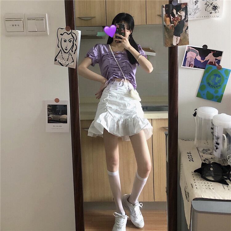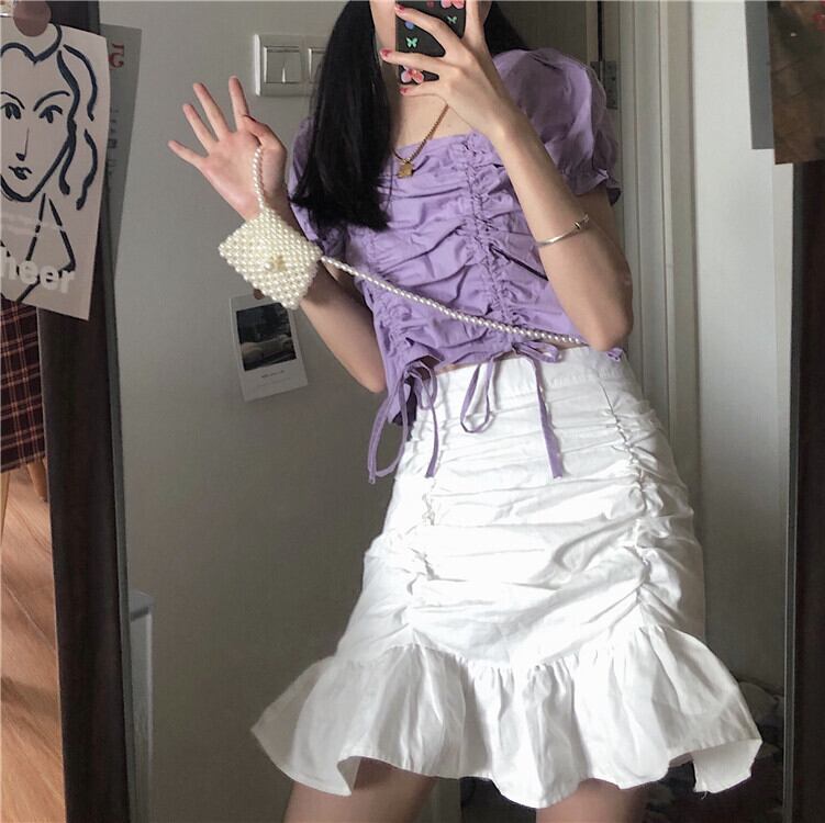 色:紫のシャツワンピース,ホワイトスカートワンピース