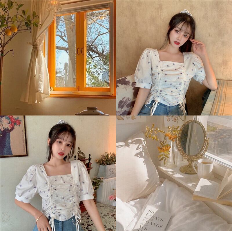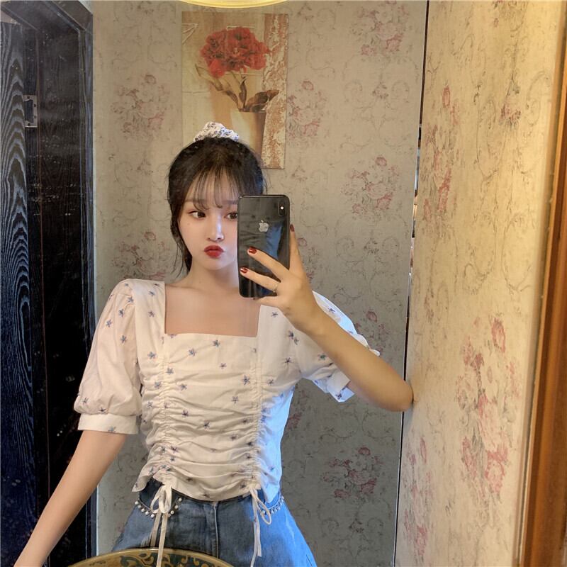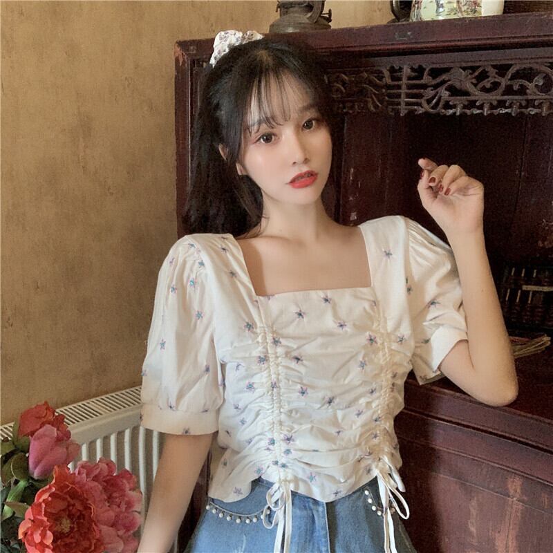 ✞ 花柄刺繍ショートギャザーシャツブラウス半袖スリーブ スウィート フラワーデザイン スクウェア ✞ゴスロリ SM ミリ 甘ロリ クラロリ 和ロリ エレガント 黒ロリ 姫ロリ 華ロリ BB-BB3927341