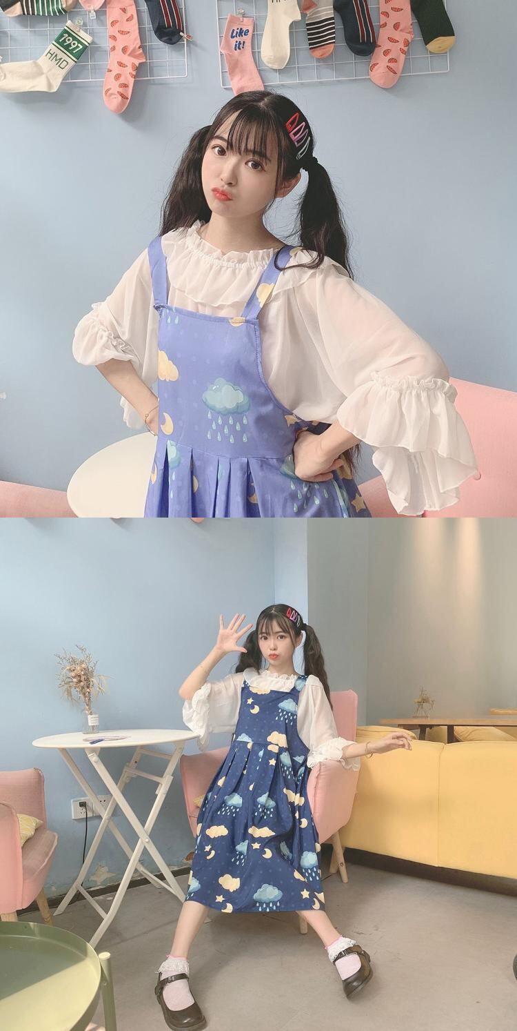 色:ピンクブルーストラップスカート/ワンピース,ダークブルーのサスペンダースカート/シングルピース