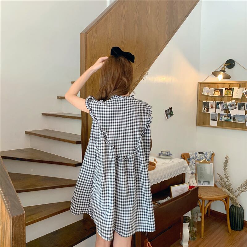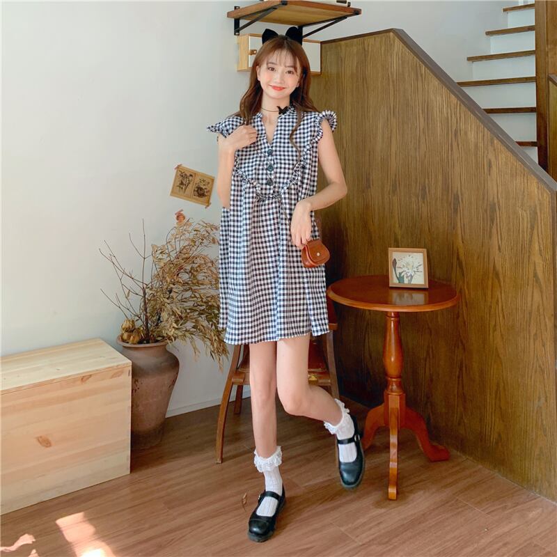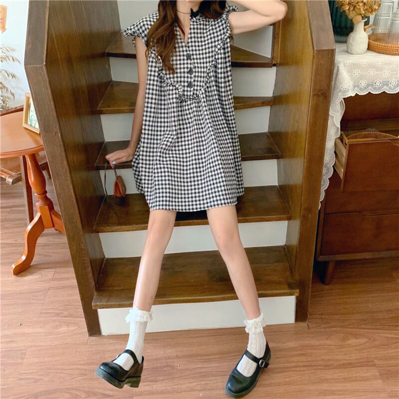 ✞ スカート きれいめ☆Vネックスタンダードブラック白チェック柄ノースリーブ ホワイト レトロ ステッチ ✞ゴスロリ SM ミリ 甘ロリ クラロリ 和ロリ エレガント 黒ロリ 姫ロリ 華ロリ BB-BB8639988
