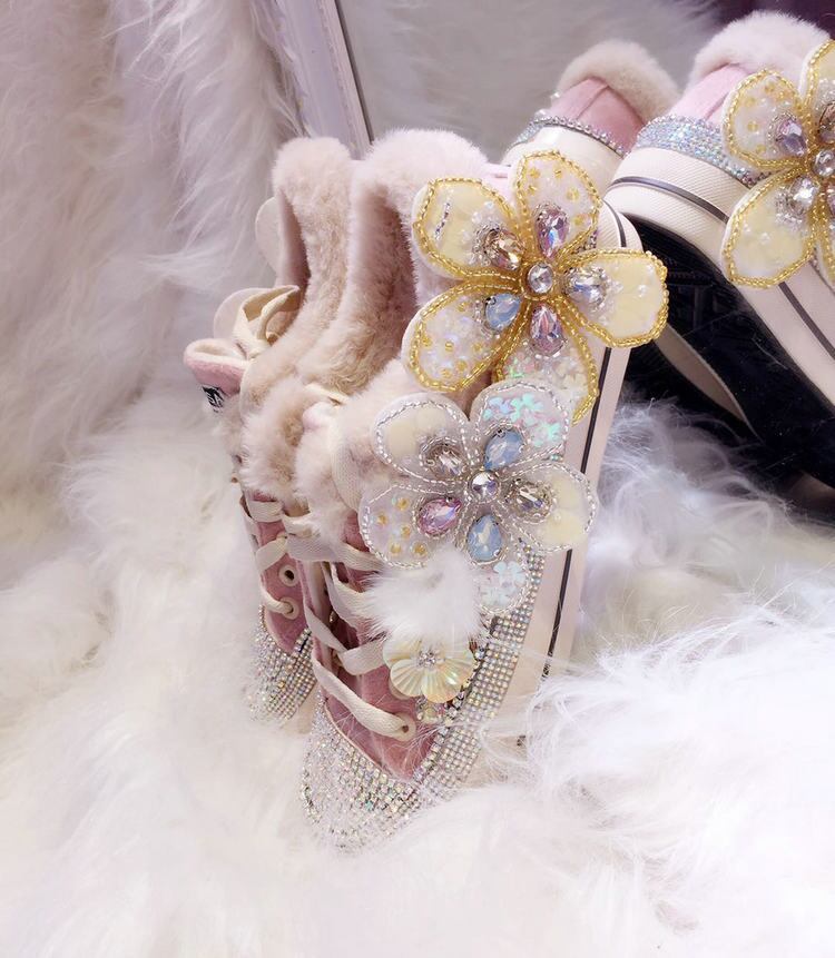 ✞✝✞ 花柄ストラップ ウィンター 靴 シューズ ピンク スウィート 冬物 フラワーデザイン ✞✝✞ゴスロリ SM ミリ 甘ロリ クラロリ 和ロリ エレガント 黒ロリ 姫ロリ 華ロリ DD-DD5564740